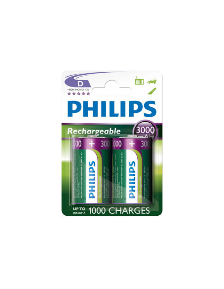 Geniet langer van uw apparaatmet deze oplaadbare D-batterijen van 3000 mAhUw elektronische producten zoals elektronisch speelgoed en draagbare audiospelersverbruiken meer energie dan ooit. Geniet er langer van met deze oplaadbare D-batterijenmet hoge capaciteit, die tot maar liefst 1000 keer kunnen worden opgeladen.Topprestaties- NiMH-technologie waarmee u meerdere keren kunt opladen- Geniet steeds opnieuw van de volledige capaciteit- U spaart geld omdat u 1000 maal opnieuw kunt oplade