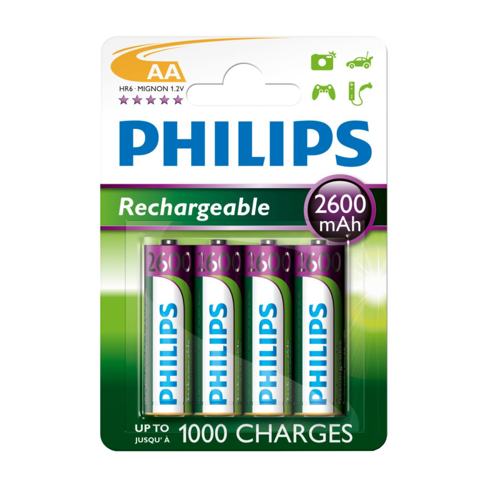 Geniet langer van uw apparaat. Deze batterijen met een fantastische capaciteit van 2600 mAh zijn uitermate geschikt voor digitalecamera's en andere apparaten met een hoog energieverbruik. Deze AA-batterijen met zeer hogecapaciteit hoeven niet helemaal leeg te zijn voordat u deze opnieuw oplaadt. U kunt de batterijenopladen wanneer u wilt.Topprestaties- NiMH-technologie waarmee u meerdere keren kunt opladen- Een fantastische capaciteit voor de bediening van al uw digitale apparaten- Geniet steeds opnieuw van de volledige capaciteit- U spaart geld omdat u 1000 maal opnieuw kunt opladen