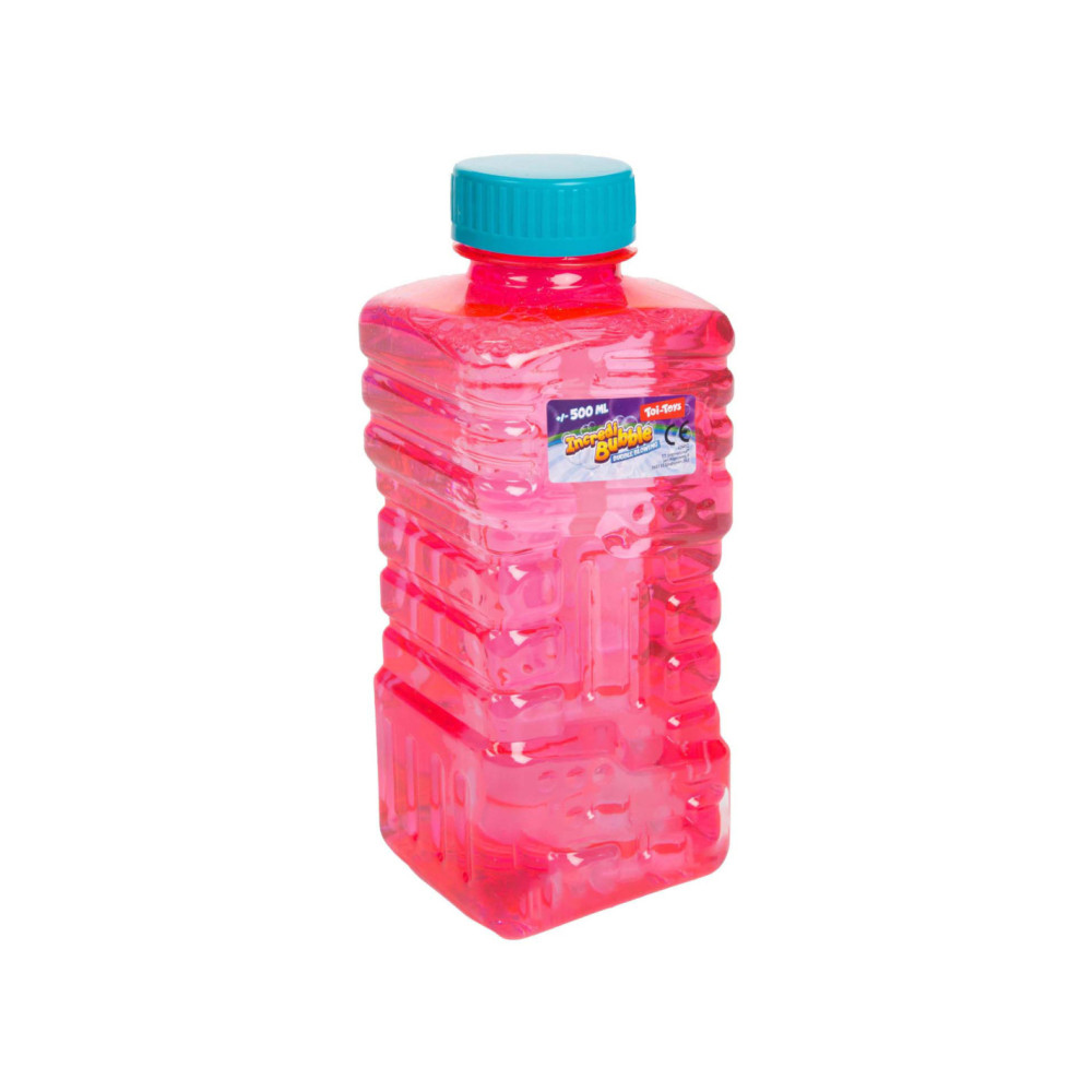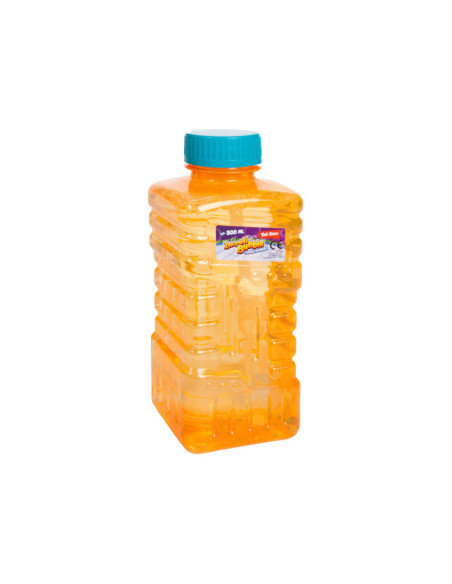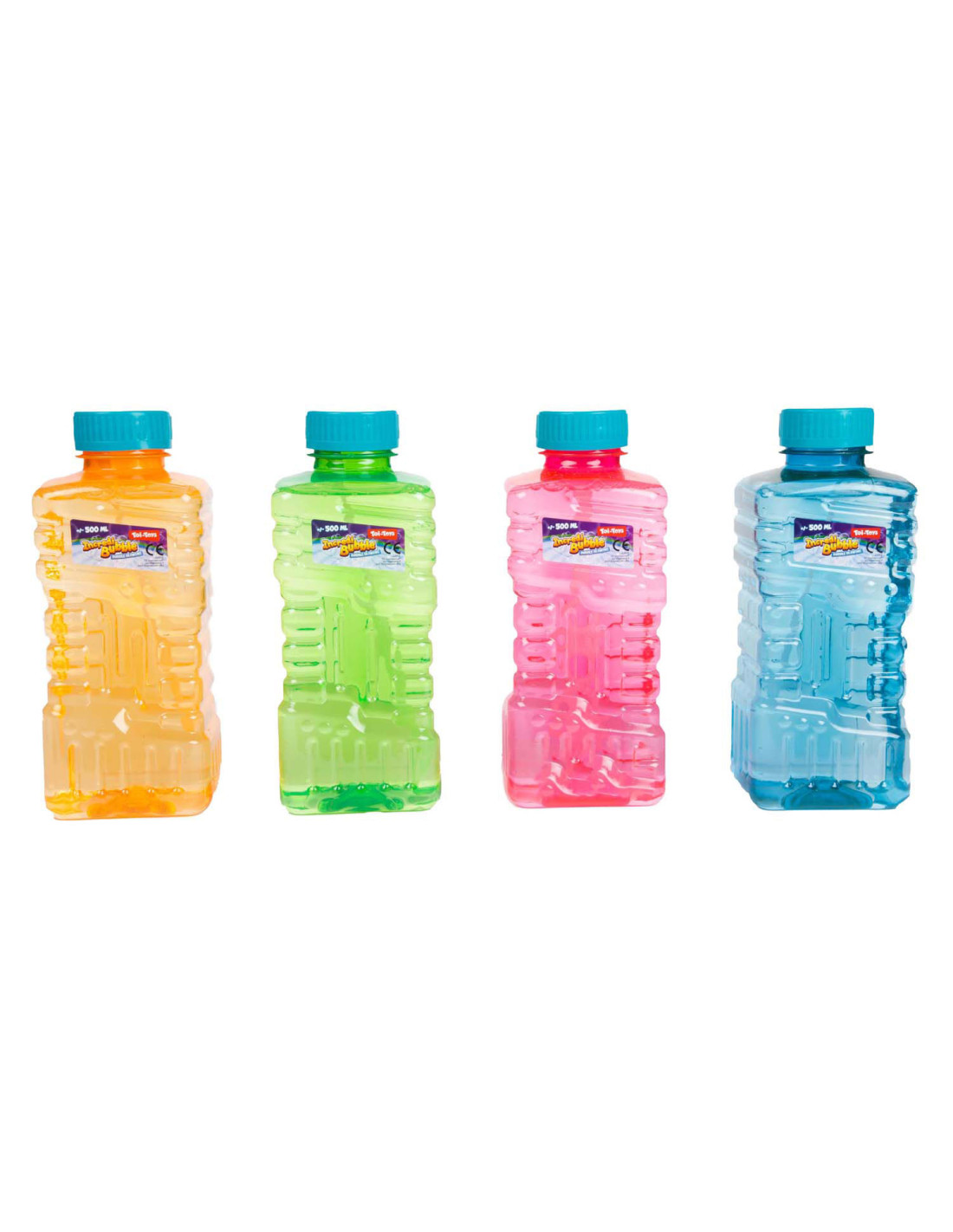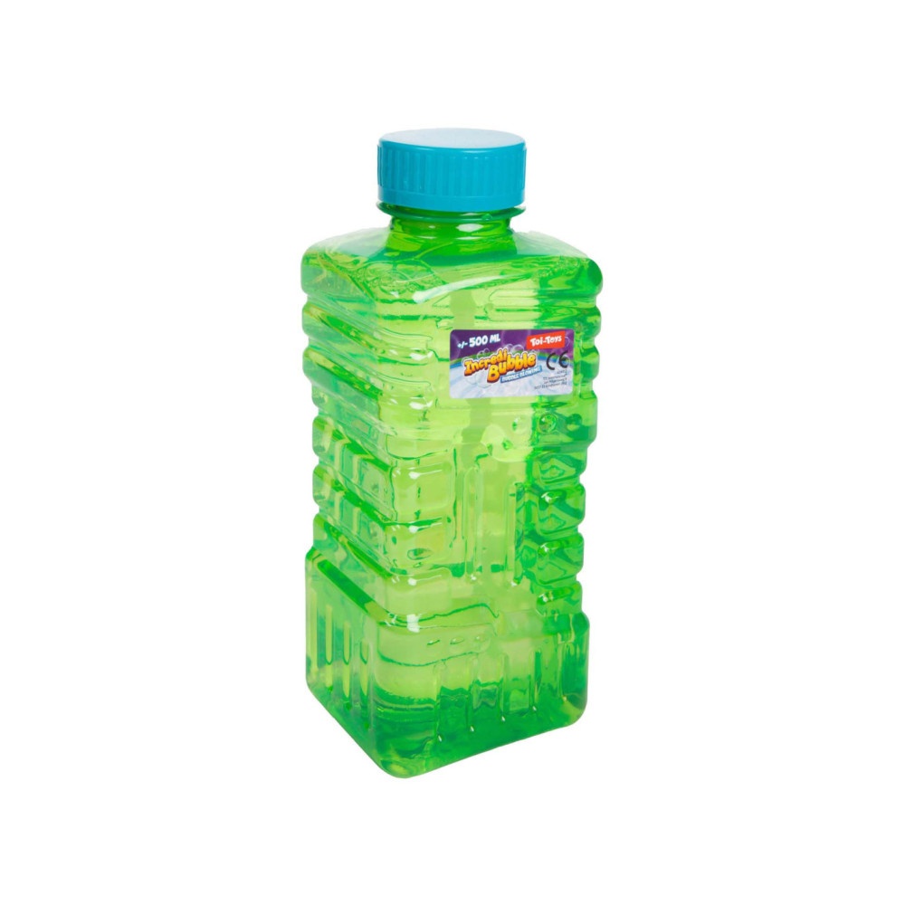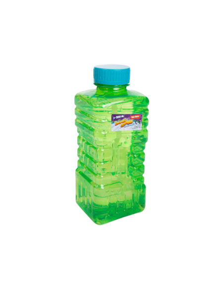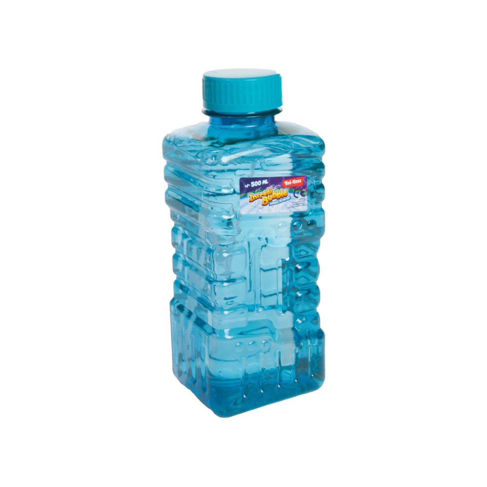 Rechthoekige fles met 500 ml navulling bellenblaasvloeistof.