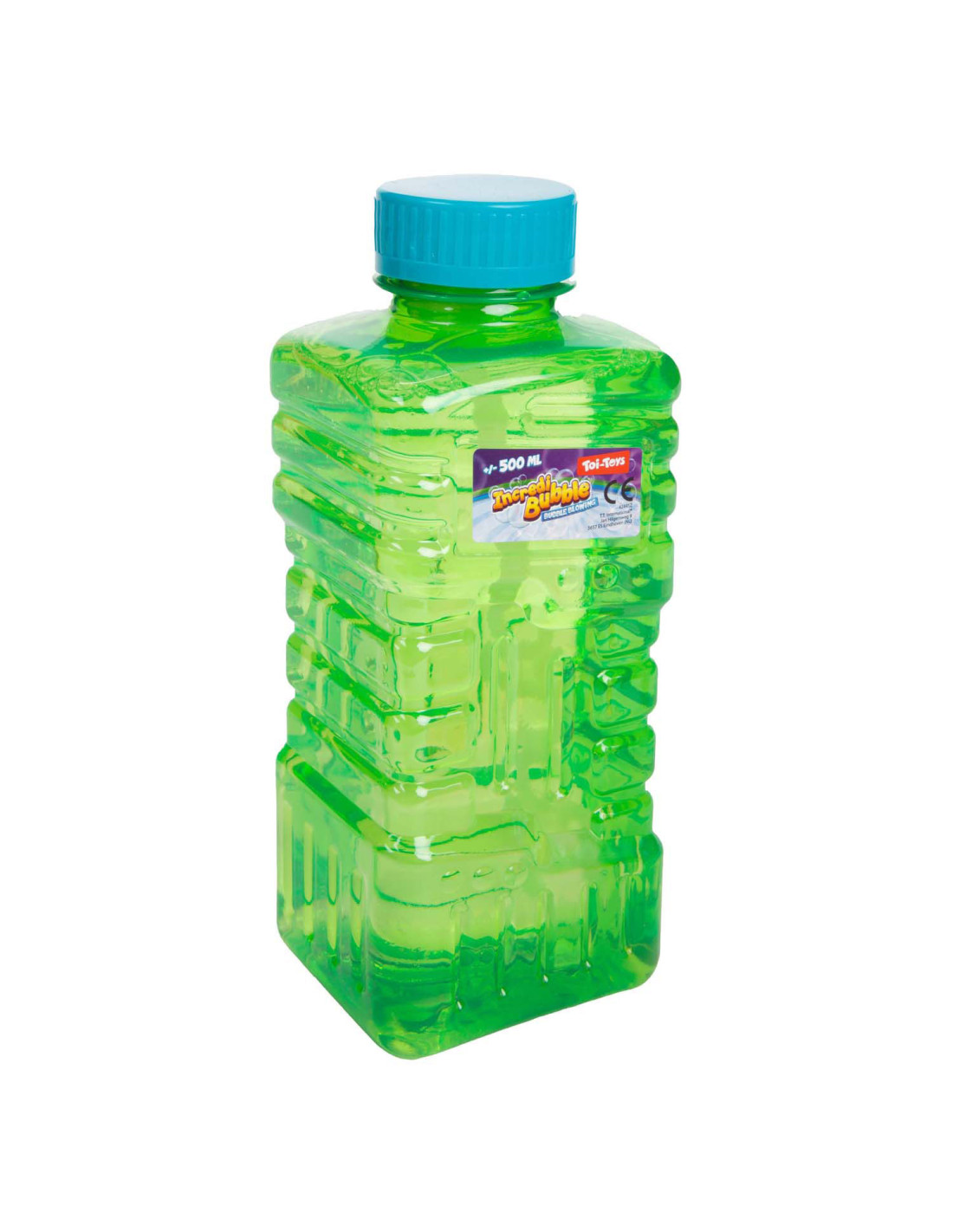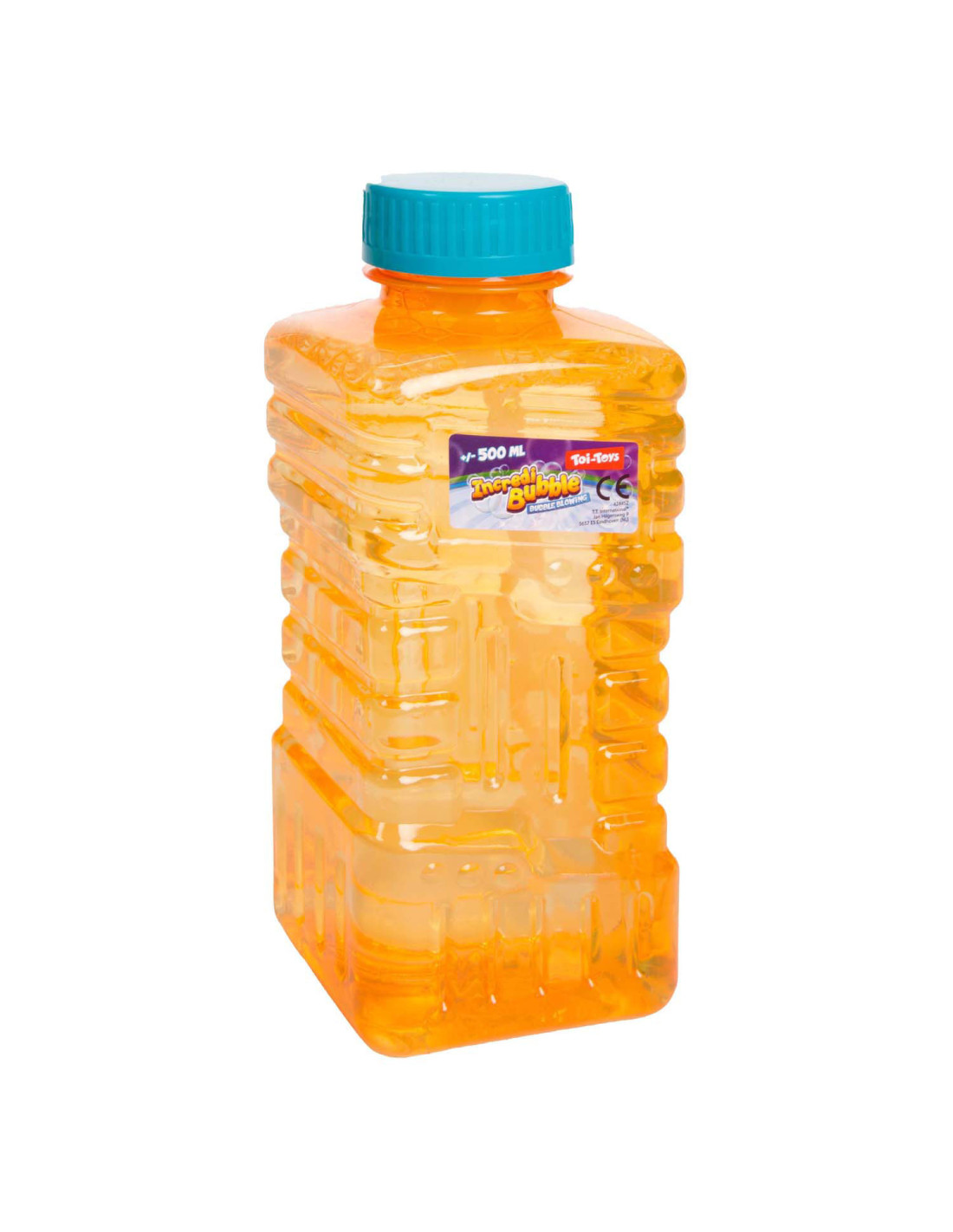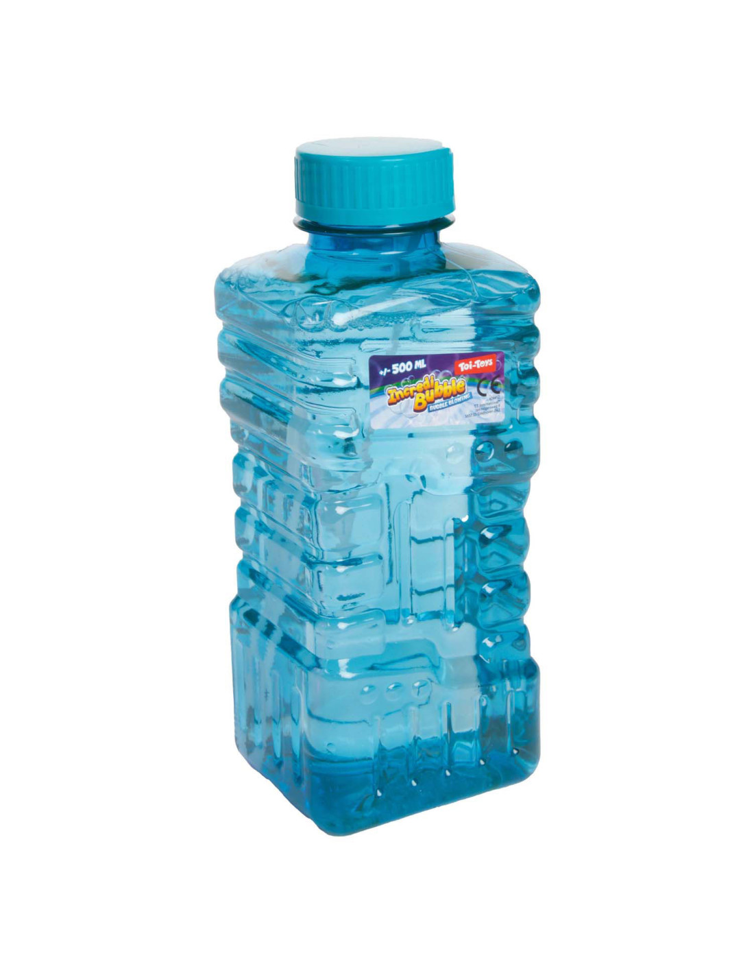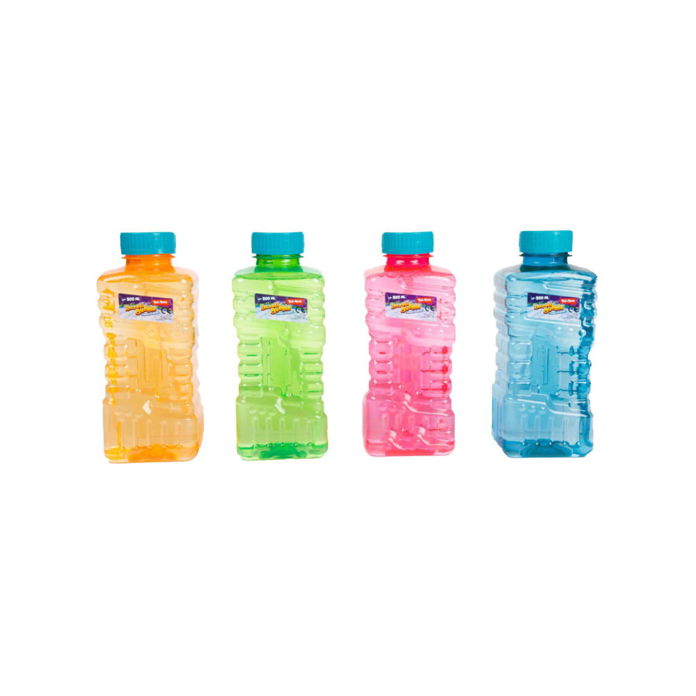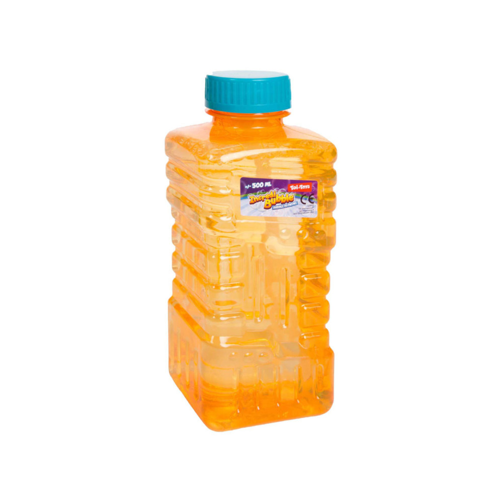 Rechthoekige fles met 500 ml navulling bellenblaasvloeistof.