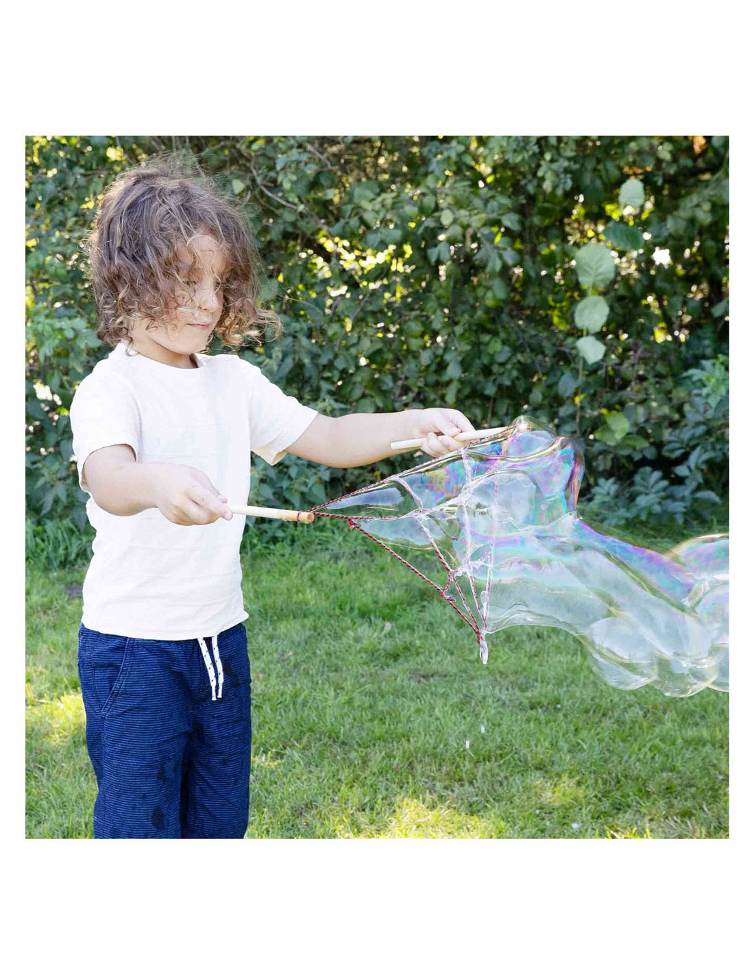 Kinderen maken met dit bellenblaasspinnenweb zelf eenvoudig supergrote, gave bellen in de buitenlucht! Kinderen zullen zich verwonderen over de kleuren en grootte van de bellen en beleven uren speelplezier buiten.