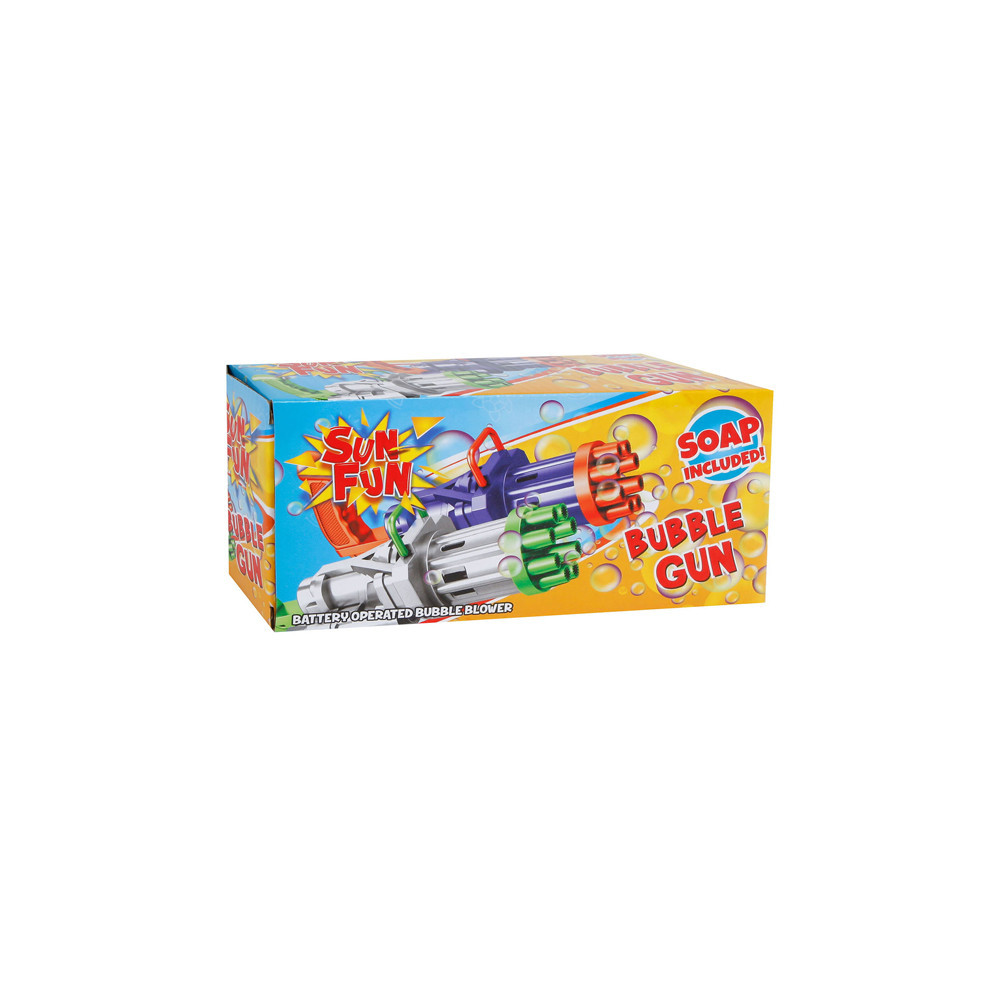 Blaas bellen als een baas met dit Sun Fun Super bellenblaaspistool van maar liefst 37 centimeter groot! Bij het bellenblaaspistool zit 50 ml bellenblaas inbegrepen, de bellenblaas is uiteraard hervulbaar met eigen bellenblaasnavulling. Geschikt voor kinderen vanaf 3 jaar. Werkt op 2 AA batterijen (niet inbegrepen).