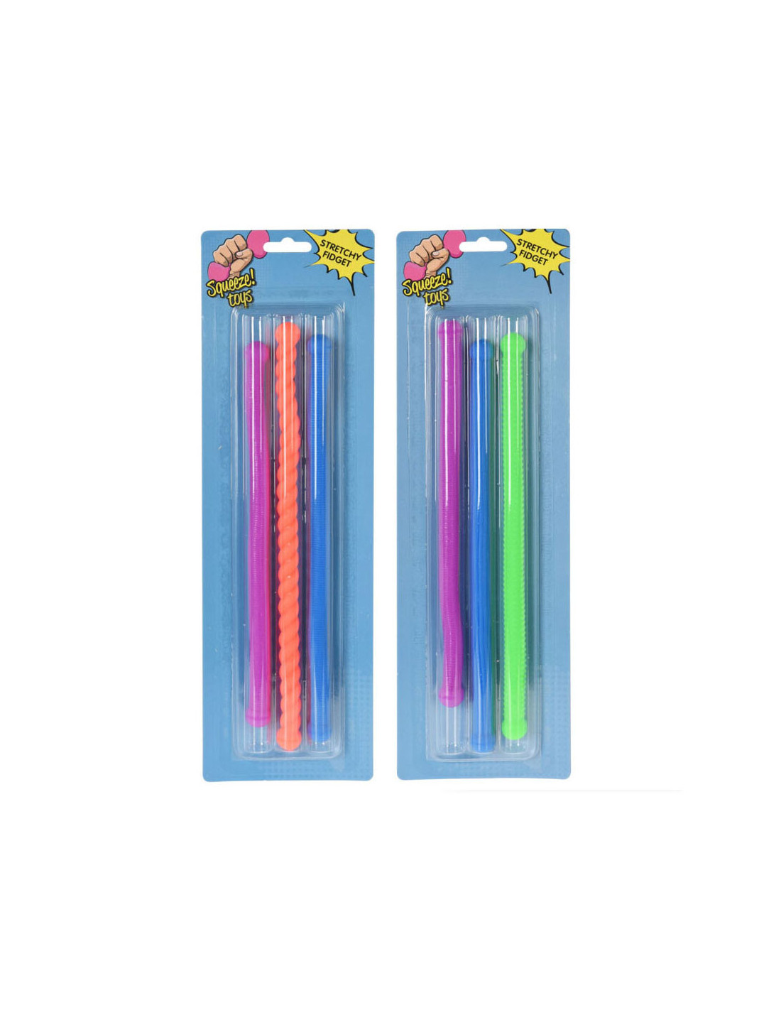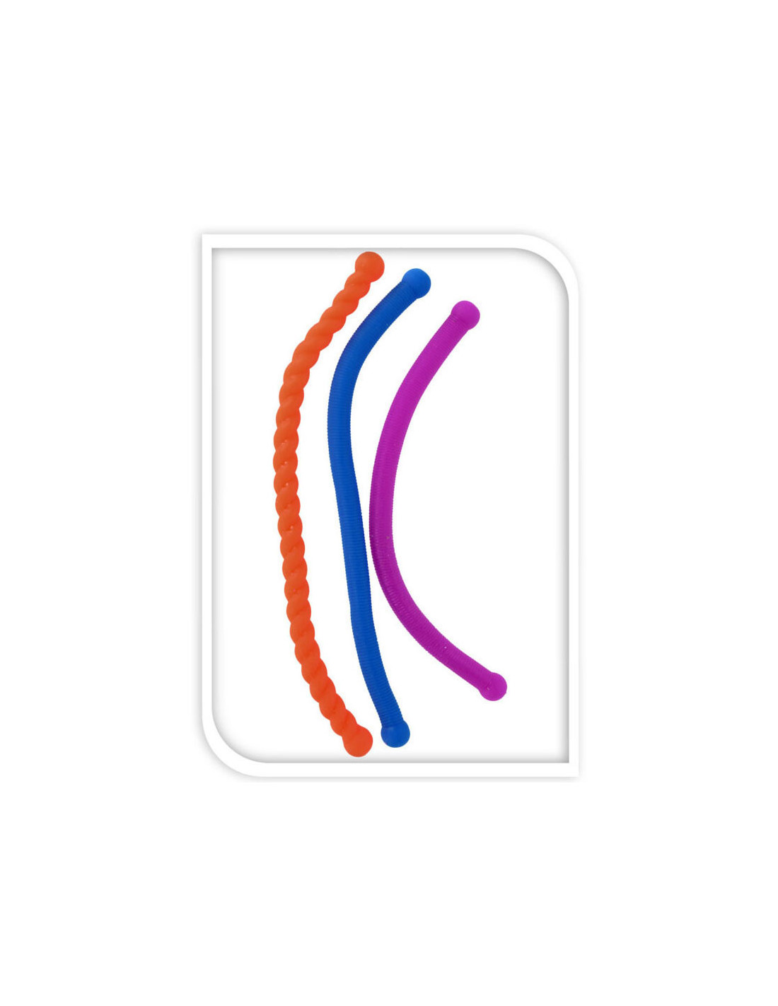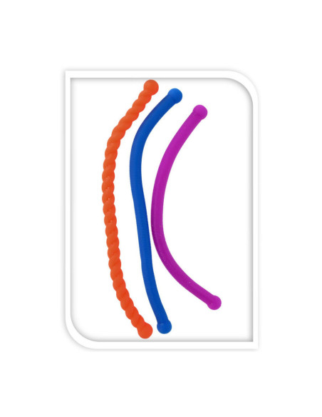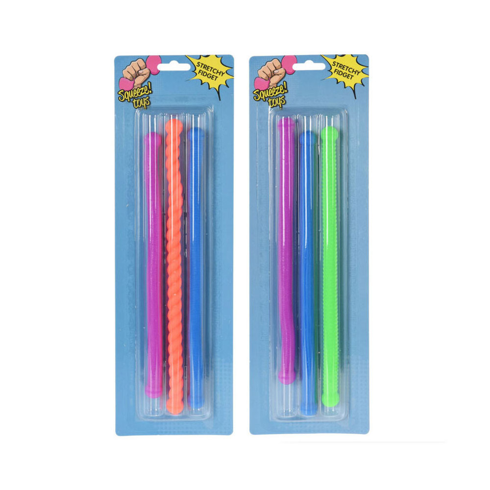 Stretchy fidgetspeeltje in de vorm van een langwerpige sliert. Afmeting: 29 x 1,5 centimeter. Geschikt voor kinderen vanaf 3 jaar oud.