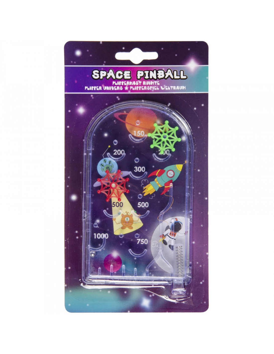 De Pinball Mini Game Ruimte is een fantastisch flipperspel dat je meevoert naar de mysterieuze wereld van de ruimte. Het spel is compact en draagbaar, waardoor je het overal mee naartoe kunt nemen. Schiet het balletje af en probeer zoveel mogelijk punten te scoren door het balletje in de hoogst scorende boogjes te laten landen. De achtergrond van het spel staat vol met verschillende ruimtevaartvoertuigen en ufo's, waardoor het spelen van het spel een echte belevenis wordt.