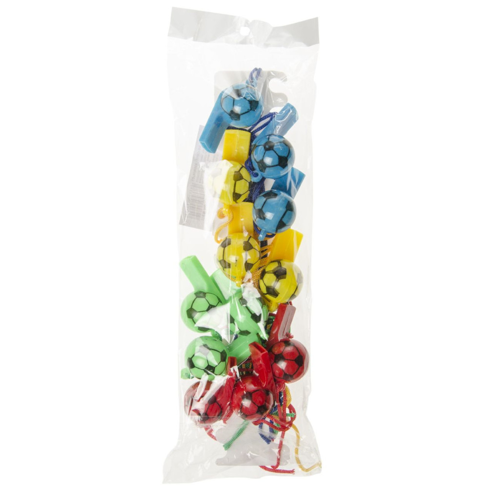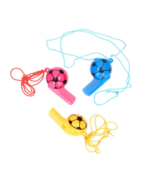 Het voetbalfluitje heeft de vorm van een voetbal en is voorzien van een handig koord, zodat je het fluitje om je nek kunt hangen en altijd binnen handbereik hebt. Het fluitje is verkrijgbaar in verschillende kleuren die gevarieerd worden geleverd. Hierdoor is er altijd een fluitje dat bij jouw stijl past.