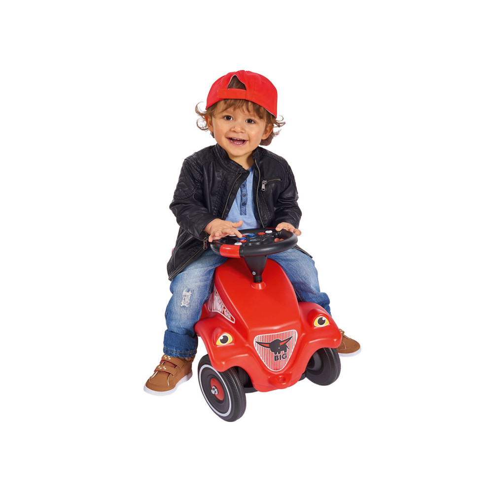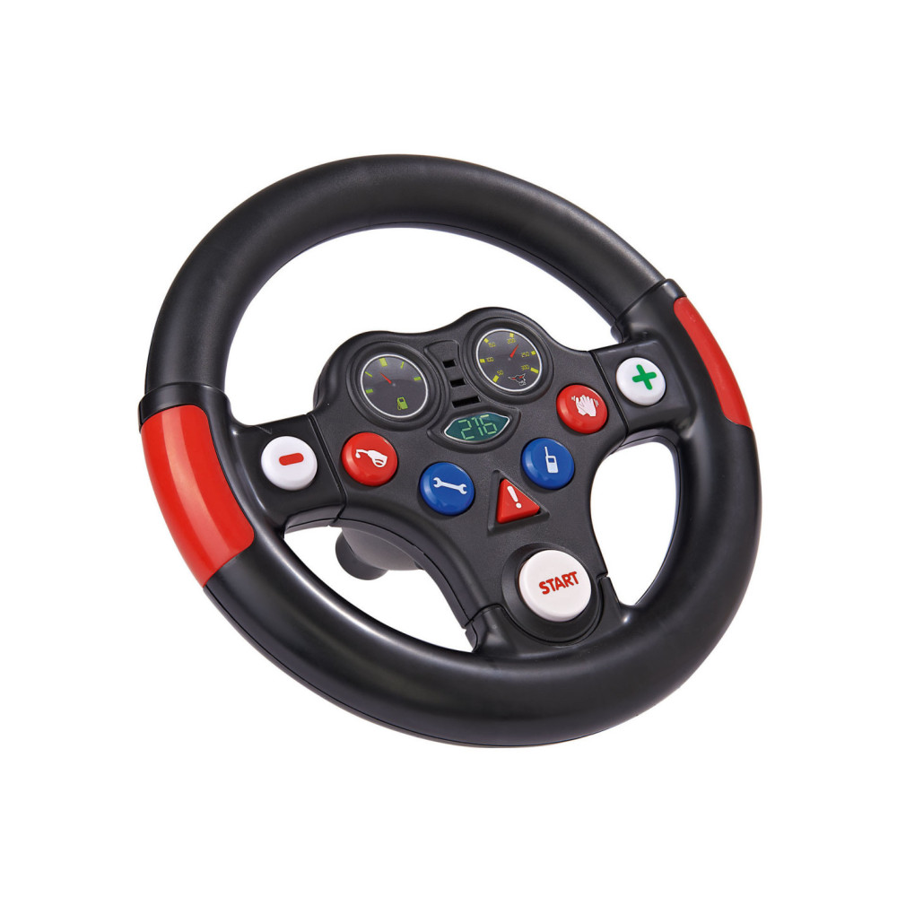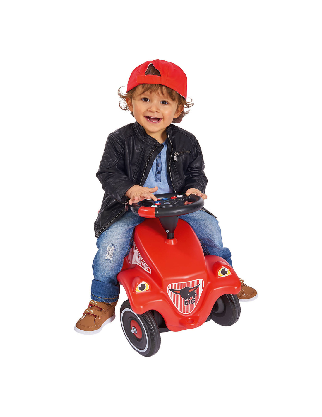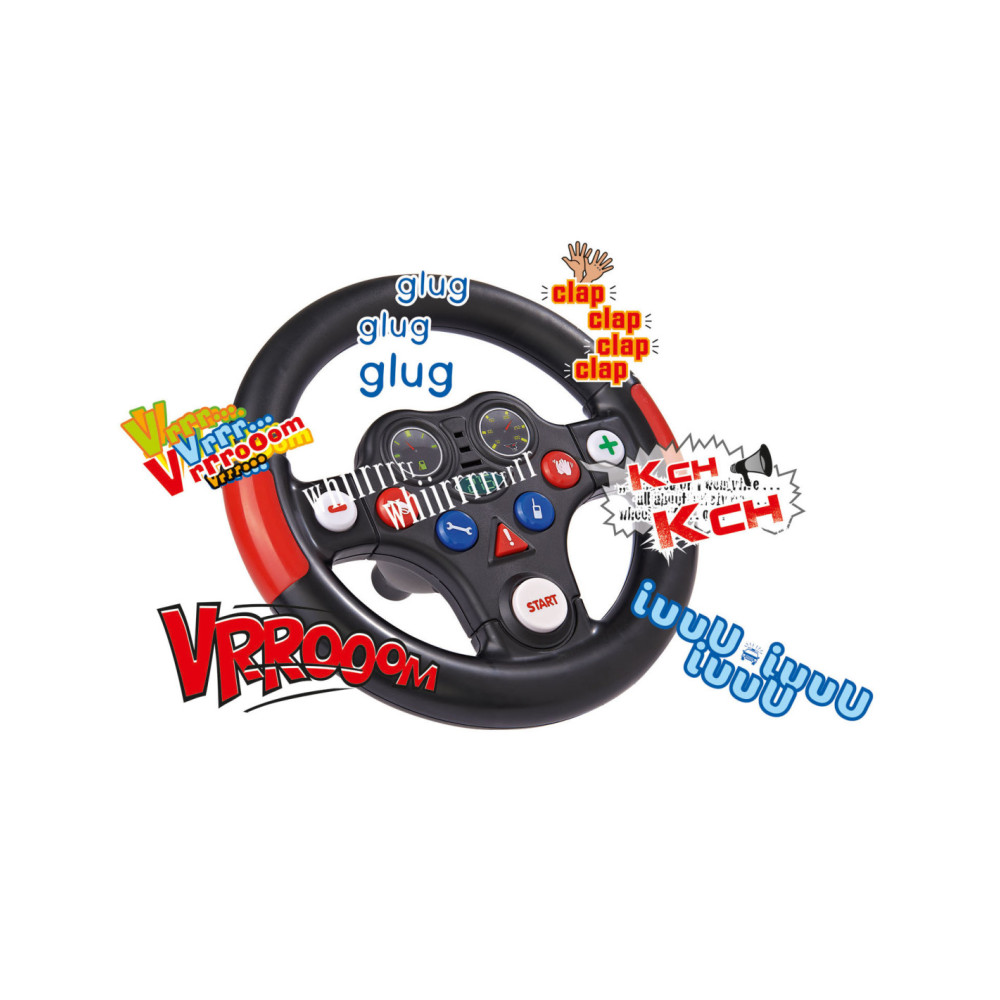 Heb je een BIG Bobby Car of een BIG New Bobby Car en wil je wel iets meer actie tijdens het rijden op deze mooie loopauto's? Kies dan voor het BIG Speelstuur met Racegeluiden. Met dit stuur vervang je gemakkelijk de stuur die al op een BIG Bobby Car of een BIG New Bobby Car vastzit. Druk de knopjes in van het speelstuur en je hoort echte racegeluiden. Autorijden wordt nu echt een beleving! Werkt op 3x AAA batterijen (batterijen zijn meegeleverd).