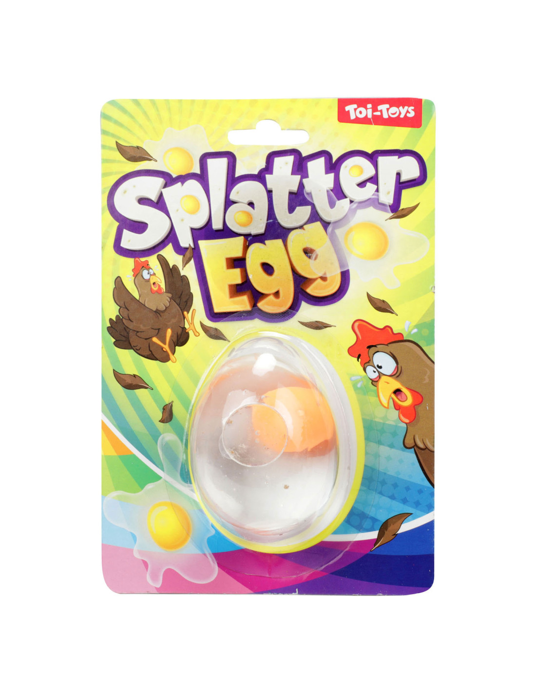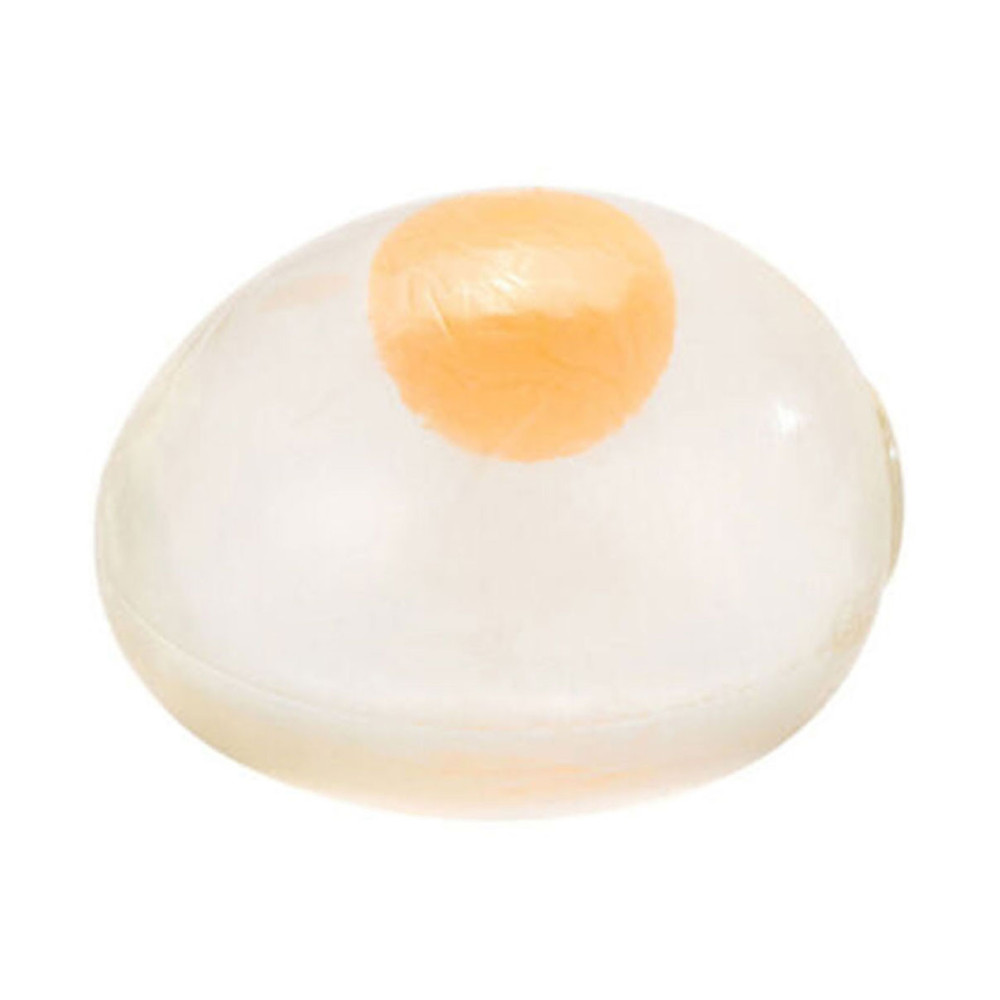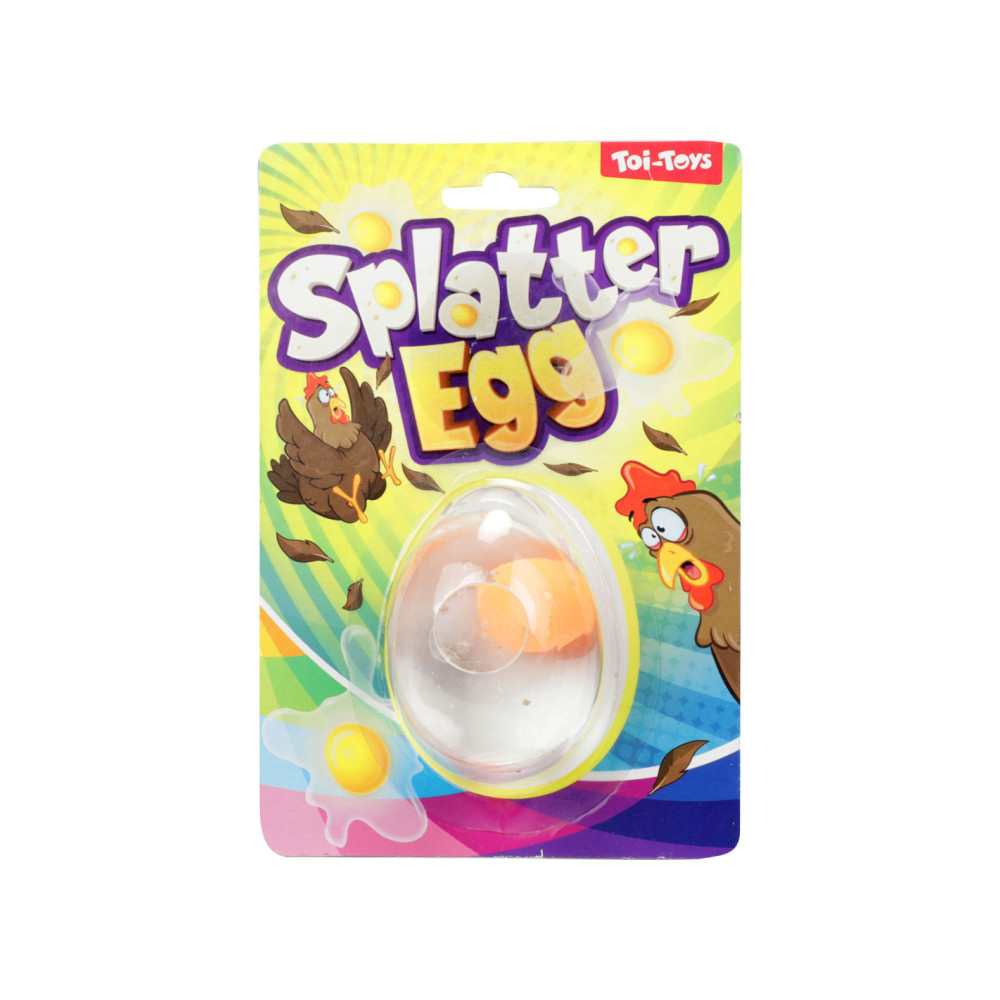 Nep-ei met dooier. Het ei kan tegen de muur of op de grond gegooid worden en spat dan uit elkaar, zonder de rommel. Geschikt voor kinderen vanaf 5 jaar.