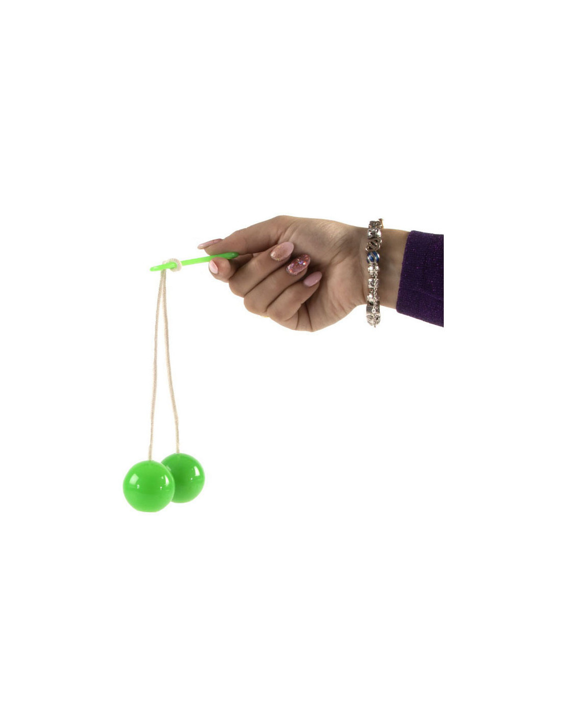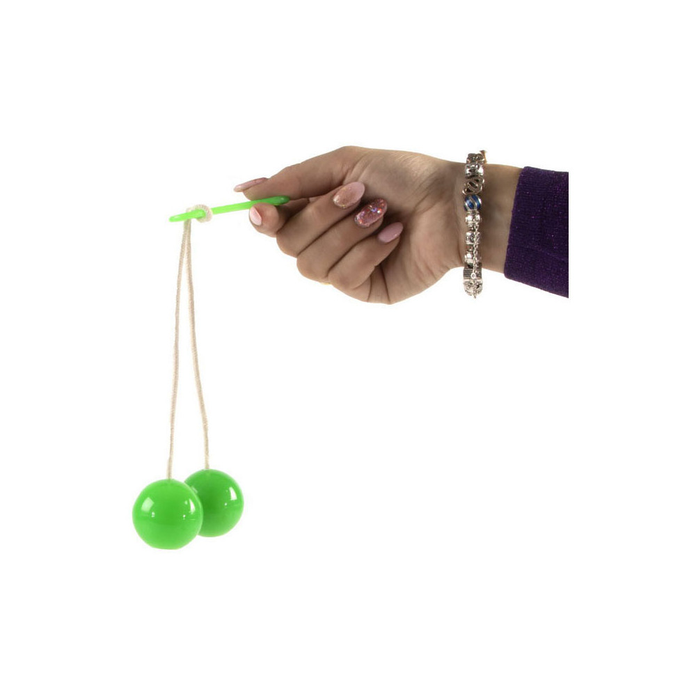Klassiek kinderspeelgoed: klik-klak ballen! Laat de ballen zo lang mogelijk ononderbroken tegen elkaar aan botsen. Verkrijgbaar in oranje, groen, paars en donkerrood. Geschikt voor kinderen vanaf 3 jaar oud.