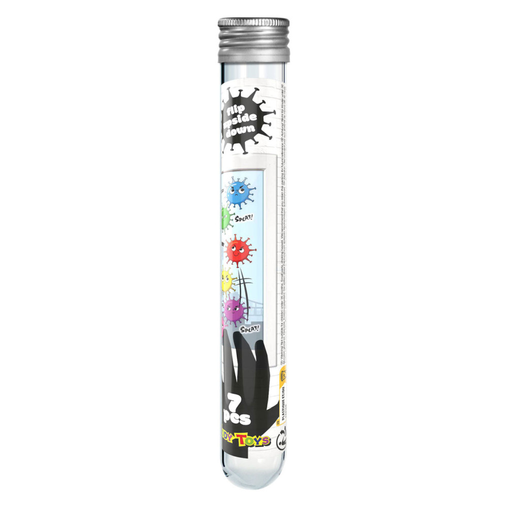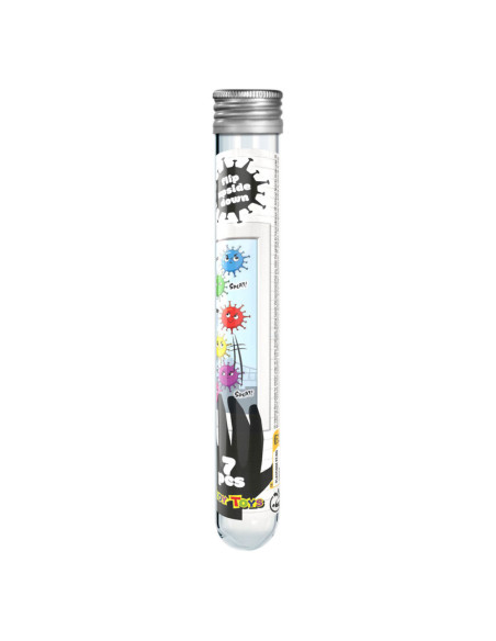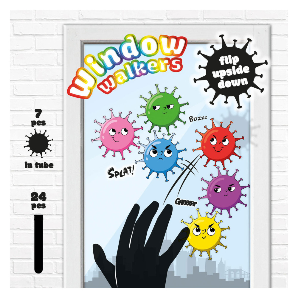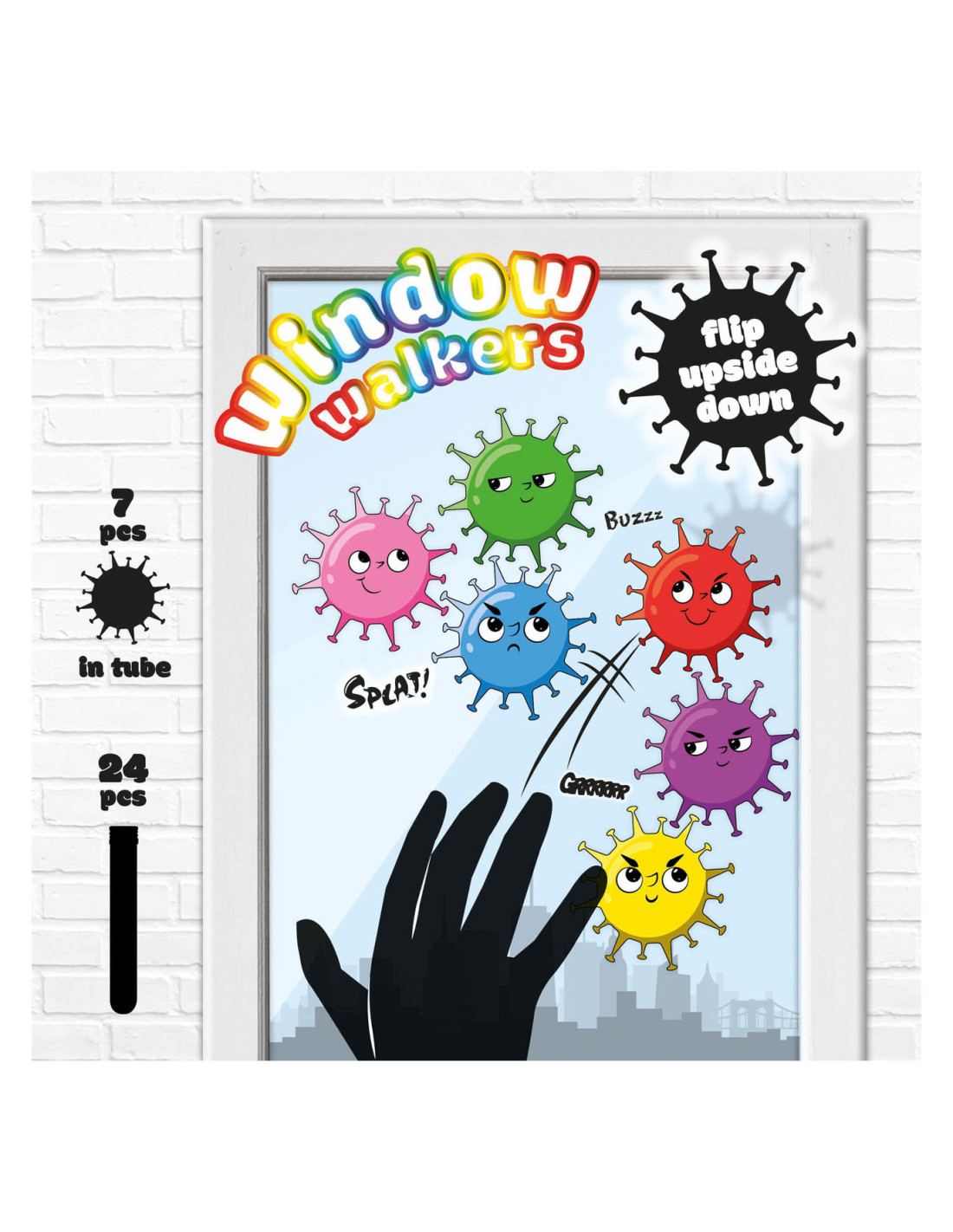 Koker met 7 raamlopers. Gooi ze tegen het raam en kijk hoe ze naar beneden 'lopen'! De raamlopers zijn 3 centimeter groot. Niet geschikt voor kinderen jonger dan 3 jaar.