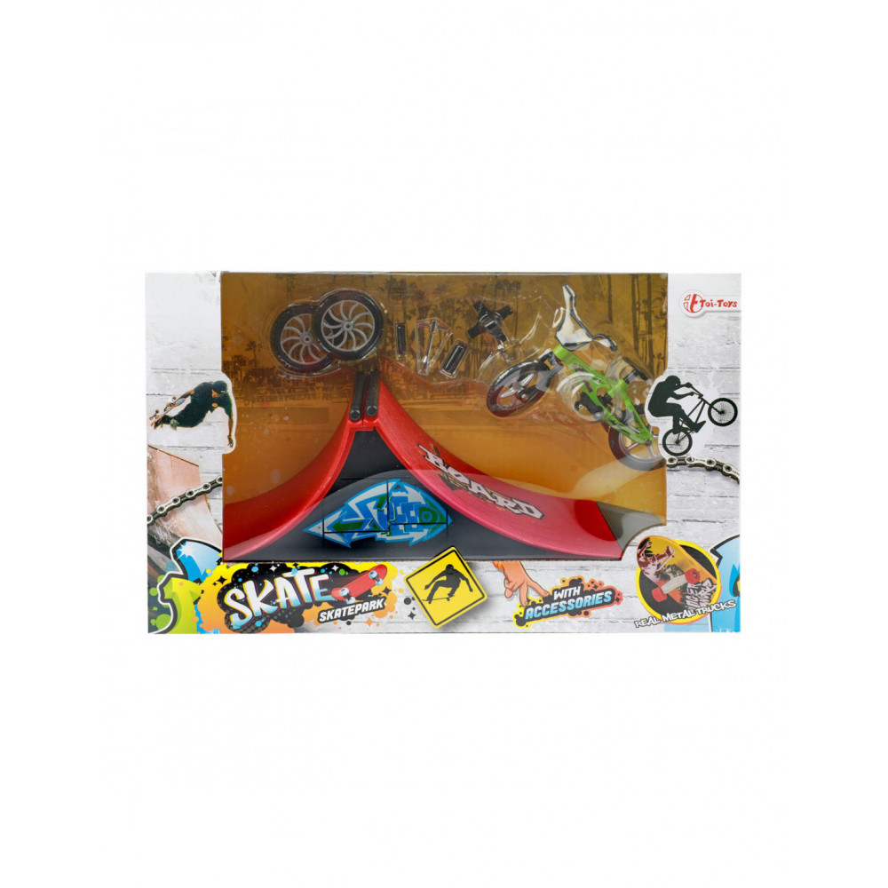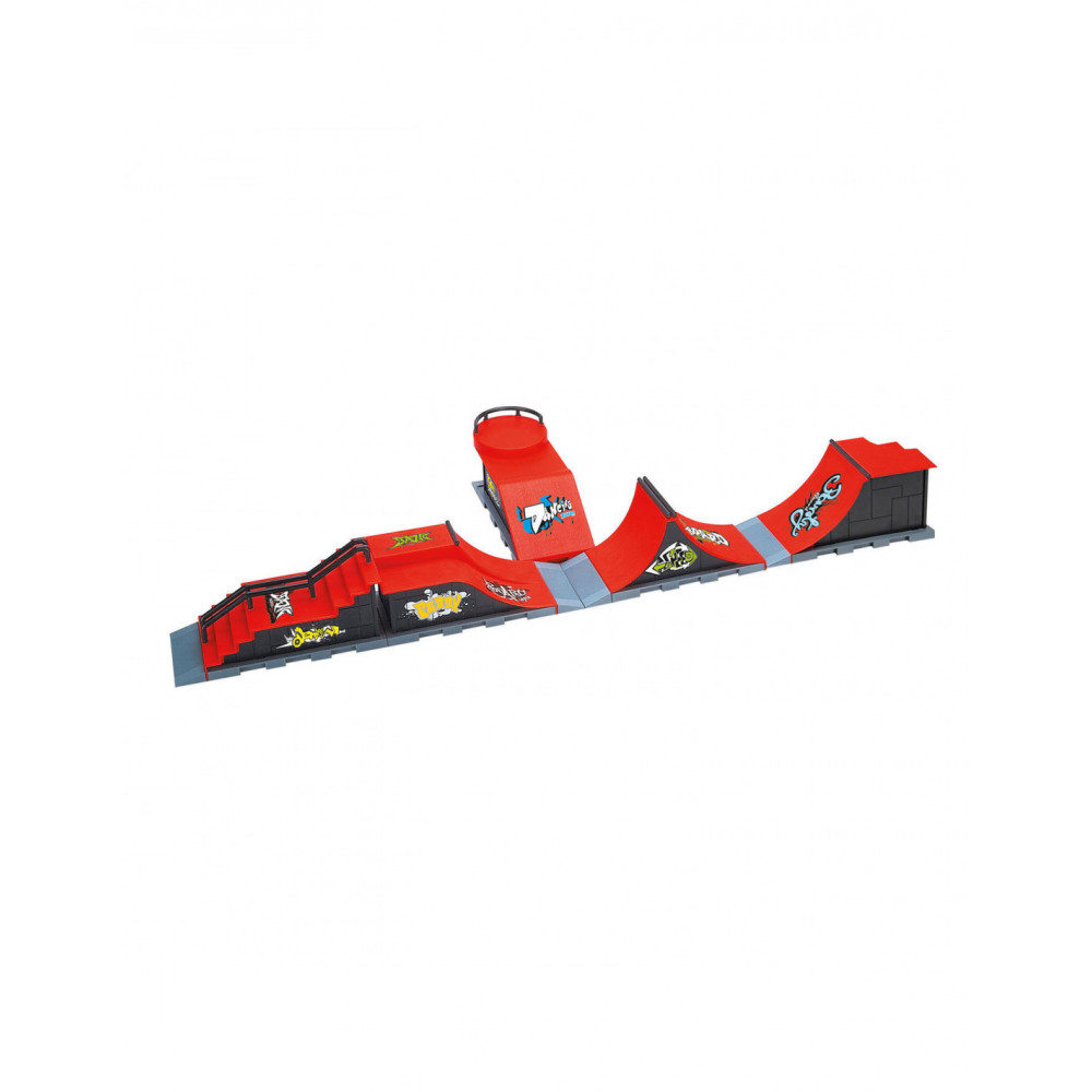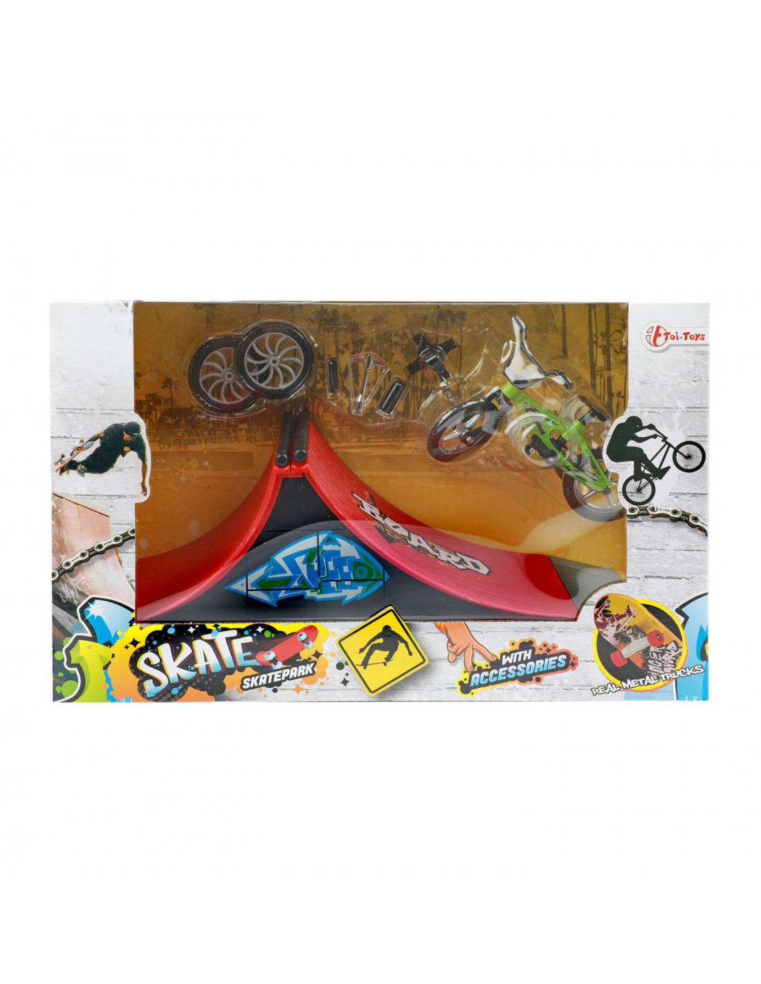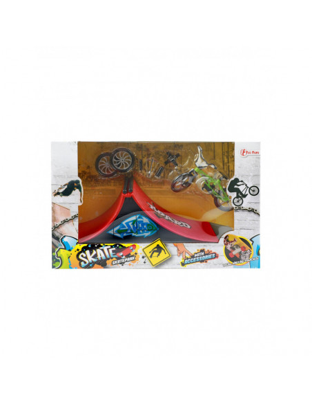 Laat de BMX fiets of het skateboard op schaal aan je vingers plakken doe er de meest coole tricks mee op het bijgeleverde stuk schans. Verder zit er een extra setje wielen bij de set en gereedschap om deze te verwisselen. Elke schans kan aan een ander geschoven worden tot een heel skate park dus verzamel ze alle 5.