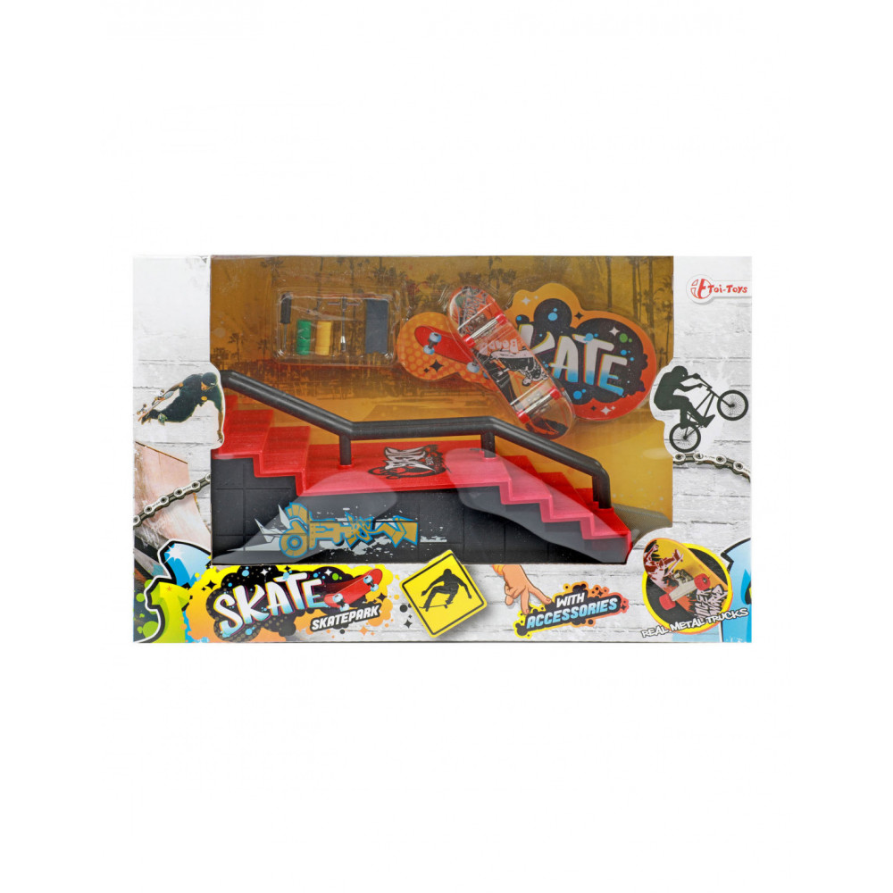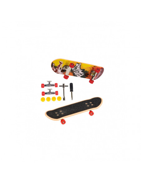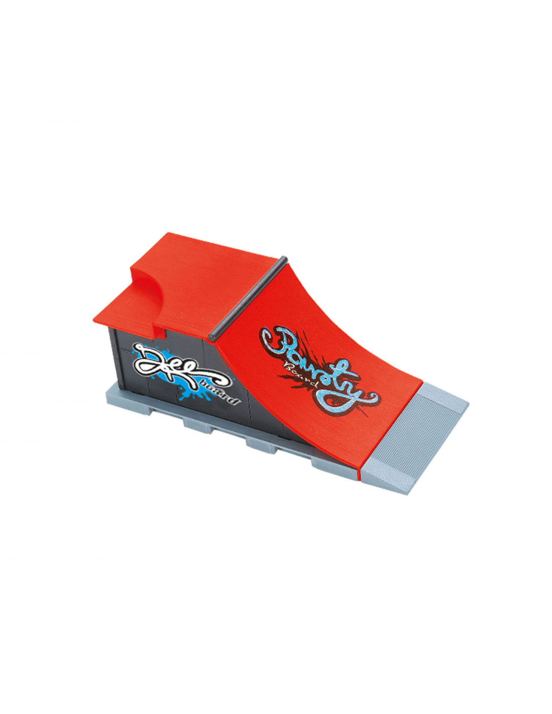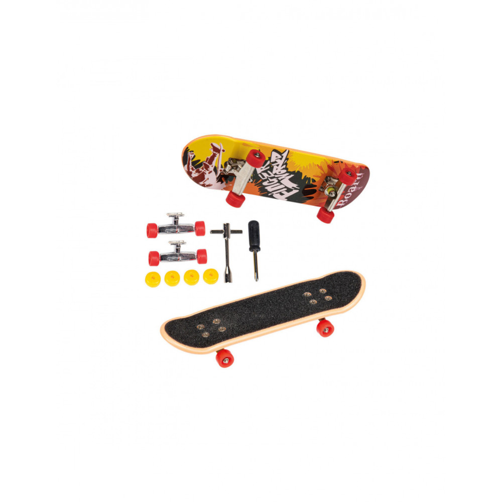 Laat de BMX fiets of het skateboard op schaal aan je vingers plakken doe er de meest coole tricks mee op het bijgeleverde stuk schans. Verder zit er een extra setje wielen bij de set en gereedschap om deze te verwisselen. Elke schans kan aan een ander geschoven worden tot een heel skate park dus verzamel ze alle 5.