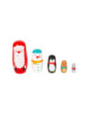 Wie verschijnt daar als volgende? Vijf kindvriendelijke en liefdevol vormgegeven kerstfiguren onthullen zich de een na de ander wanneer de grote kerstman in het midden wordt geopend. De kerstman, de sneeuwman, de pinguïn, het rendier en de beer kunnen heel eenvoudig op maat in elkaar worden genest, wat de ontwikkeling van hand-oogcoördinatie en fijne motoriek bevordert! Zittend naast elkaar geven de beeldjes een decoratief totaalbeeld weer. Dit brengt vast wat kerstsfeer in de kinderkamer.