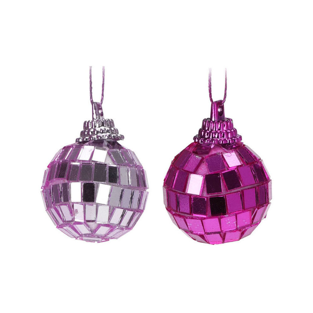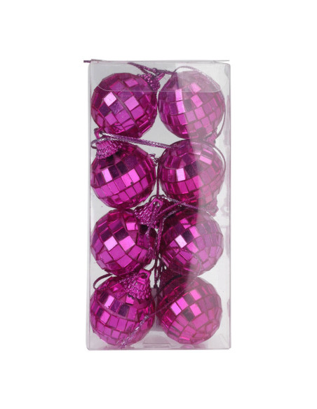 Set van 8 kerstballen in discobal/spiegelbal ontwerp. De weerspiegelende vlakken weerkaatsen de lichtjes in je kerstboom op een prachtige manier! De ballen zijn 3 centimeter groot en voorzien van een bijpassend ophangkoordje.