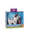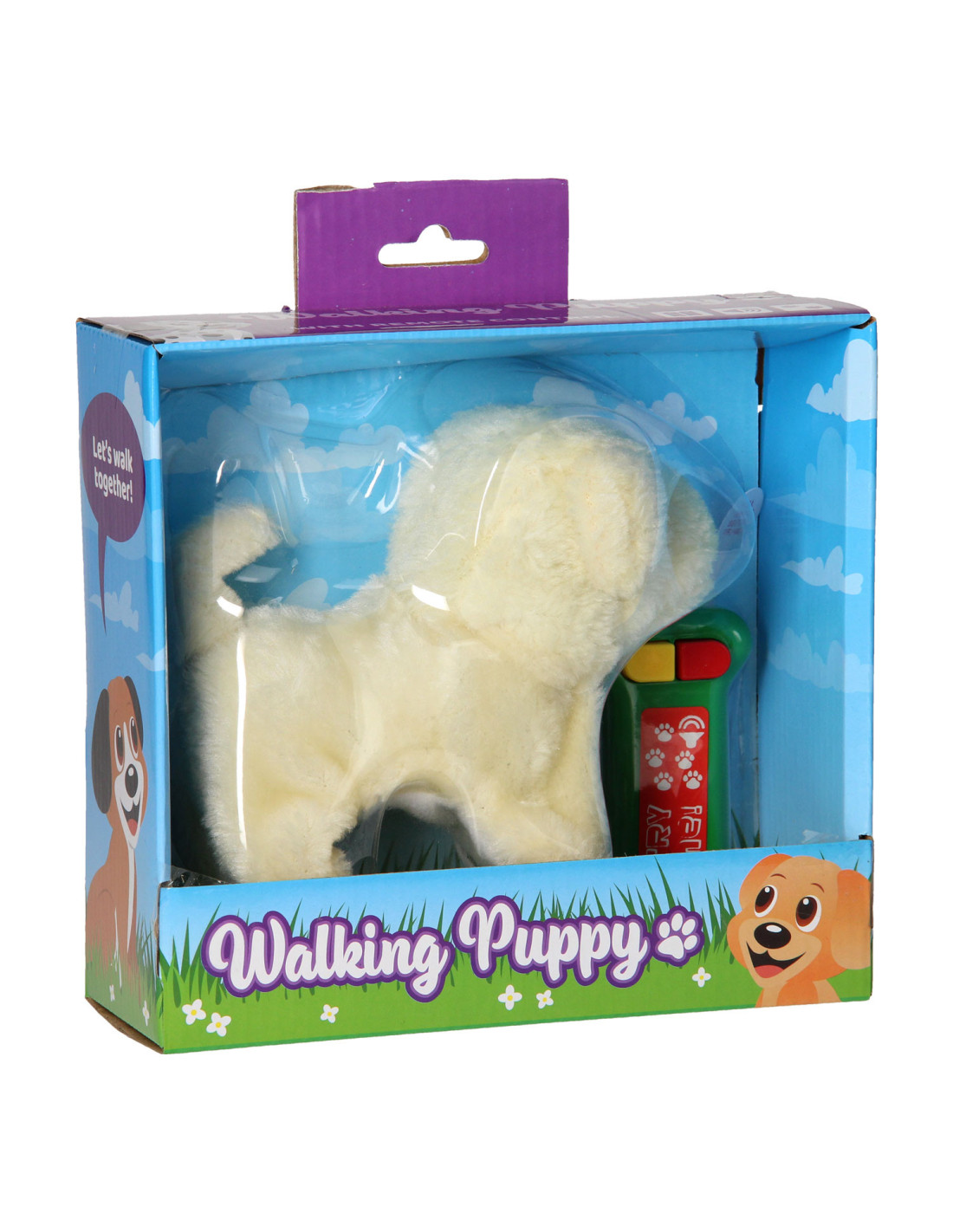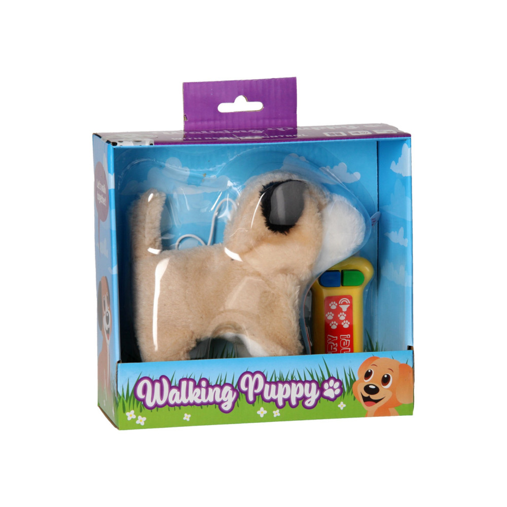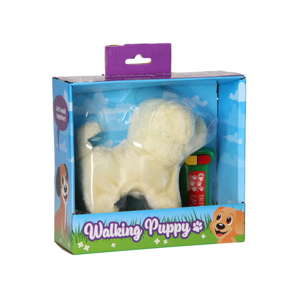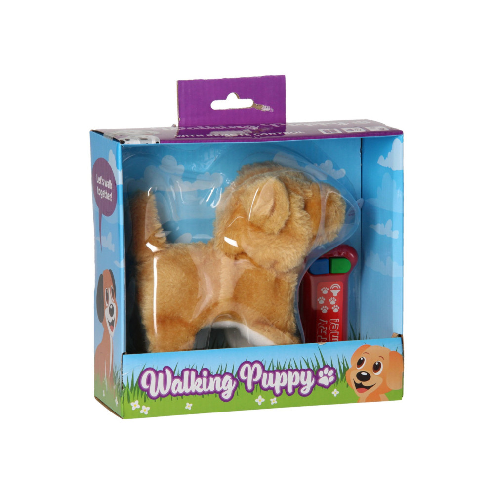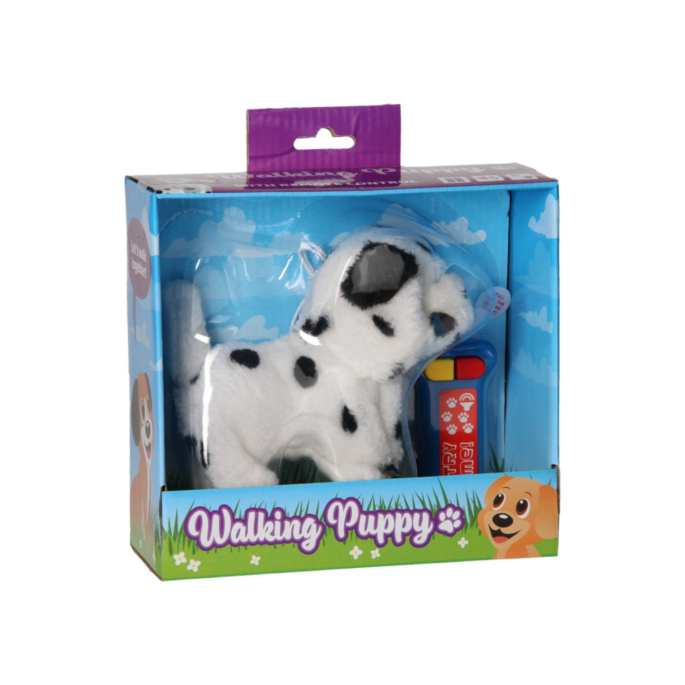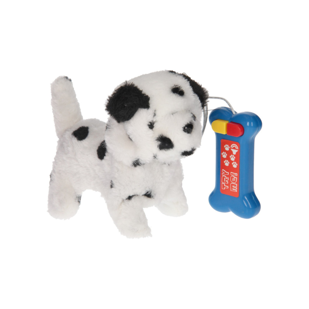 Dit ouderwets leuke speeltje zit boordevol geweldige activiteiten. De puppy wandelt met jou, blaft en kwispelt met zijn staart. Dit hondje met afstandbediening werkt op twee bijgeleverde AA batterijen. Het hondje is verkrijgbaar als labrador, sint-bernard, dalmatier of golden retriever.
