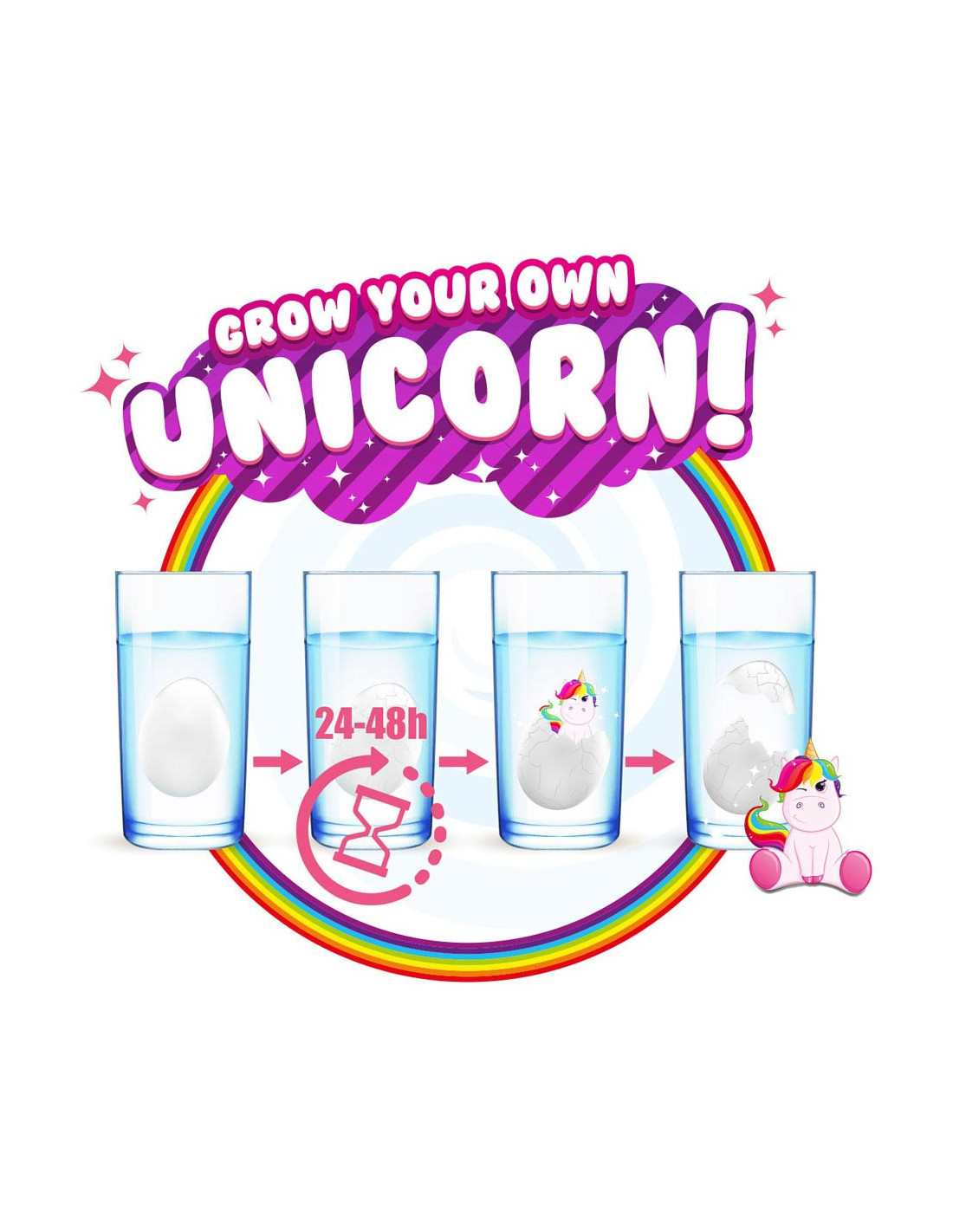 Wat er in dit ei zit kom je niet zomaar te weten. Je moet even geduld hebben. Leg het ei in een glas met water zodat het helemaal ondergedompeld is. Na 1 tot 2 dagen komt er eerst een barst het ei om om nog wat later helemaal open te barsten. Nu kun je zien welk paardje het is en kijken naar hoe je babyeenhoorn groeit totdat hij helemaal uit het ei komt. Droog hem af en de eenhoorn is van jou.