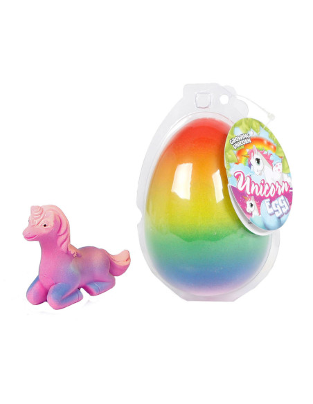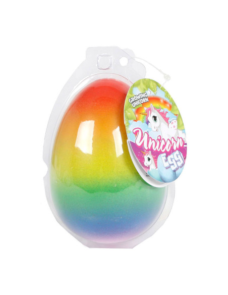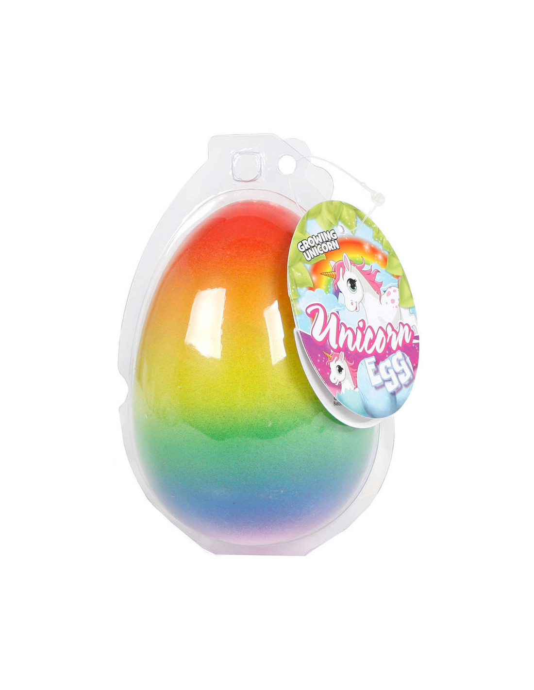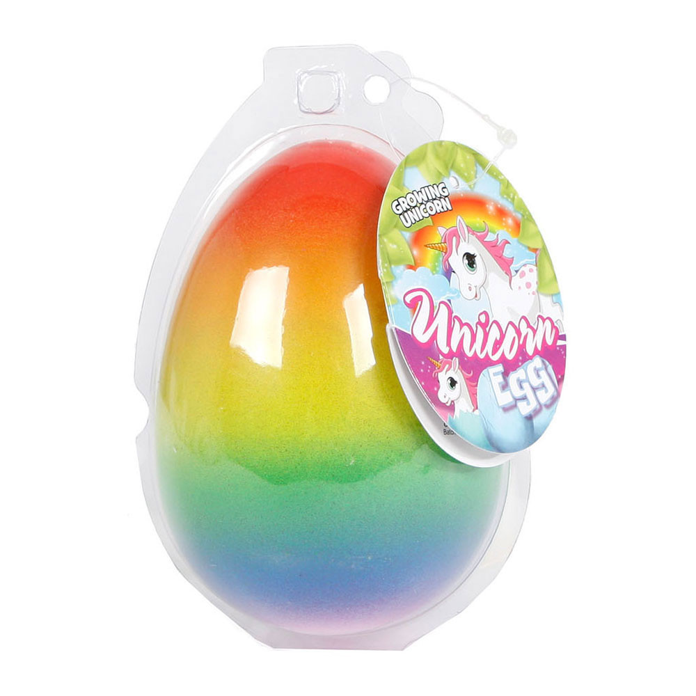 Jumbo regenboogei met daarin een unicorn die groeit als hij nat wordt. Verkrijgbaar in 3 kleuren. Afmetingen: 11 centimter groot. Niet geschikt voor kinderen jonger dan 3 jaar.