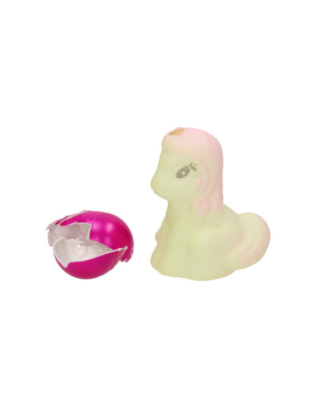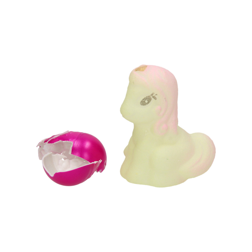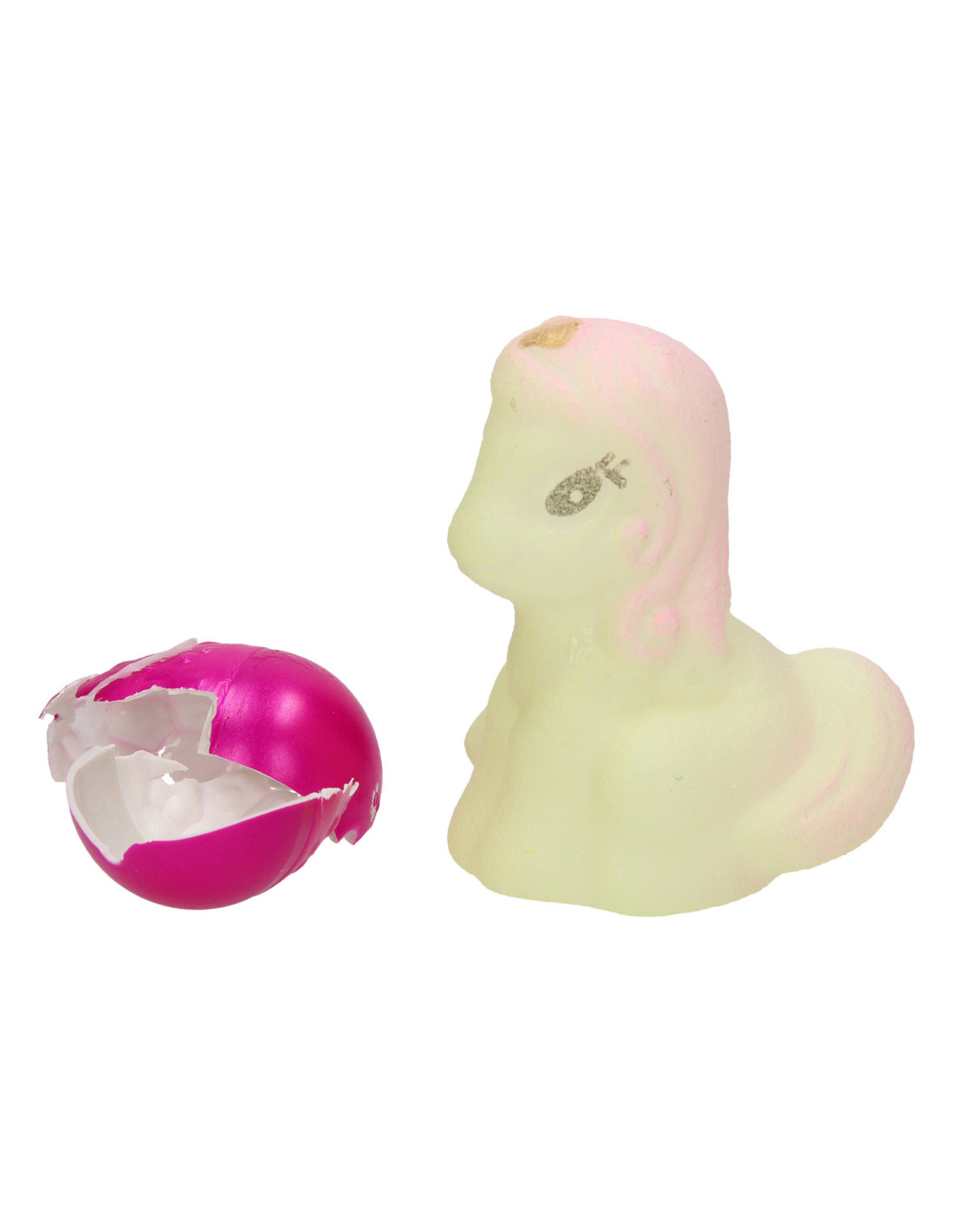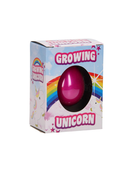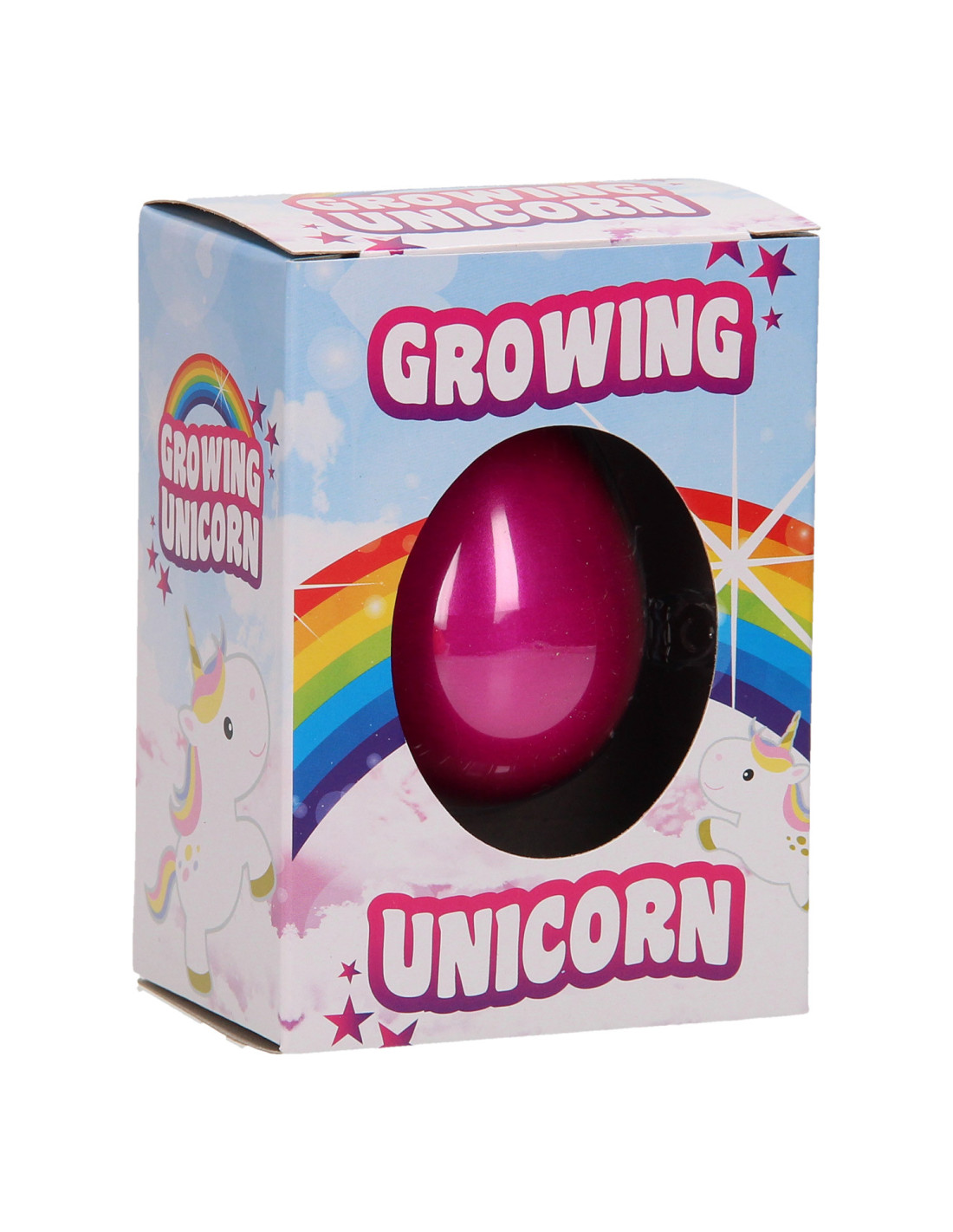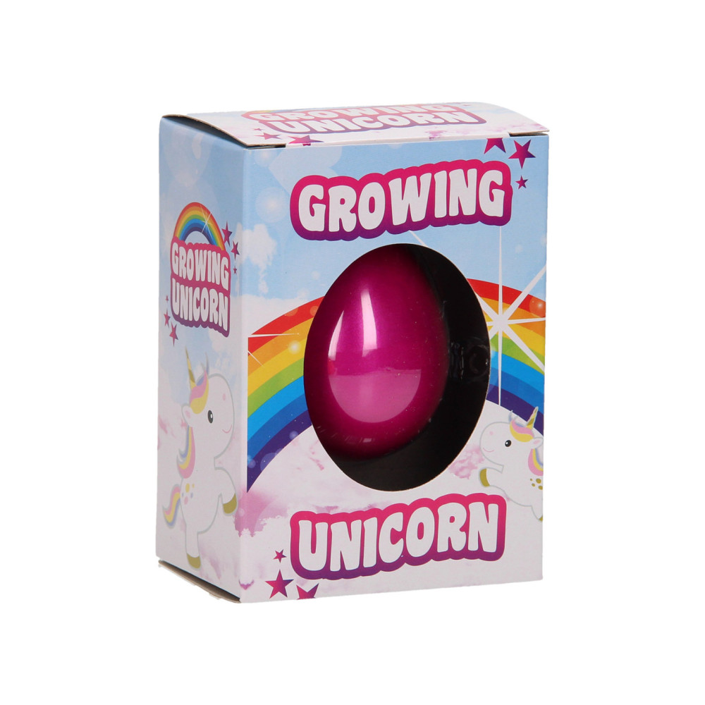 Heb jij weleens een eenhoorn uit een ei zien komen? Met dit groei-ei kan het! Stop het groei-ei in een groot glas water en na ongeveer 48 uur breekt het ei vanzelf open. Tada! Er zit een unicorn in het ei. Om de eenhoorn groter te laten worden laat je het nog een paar uur in het water liggen. Haal de eenhoorn uit het water wanneer jij denkt dat ze groot genoeg is om mee te spelen.