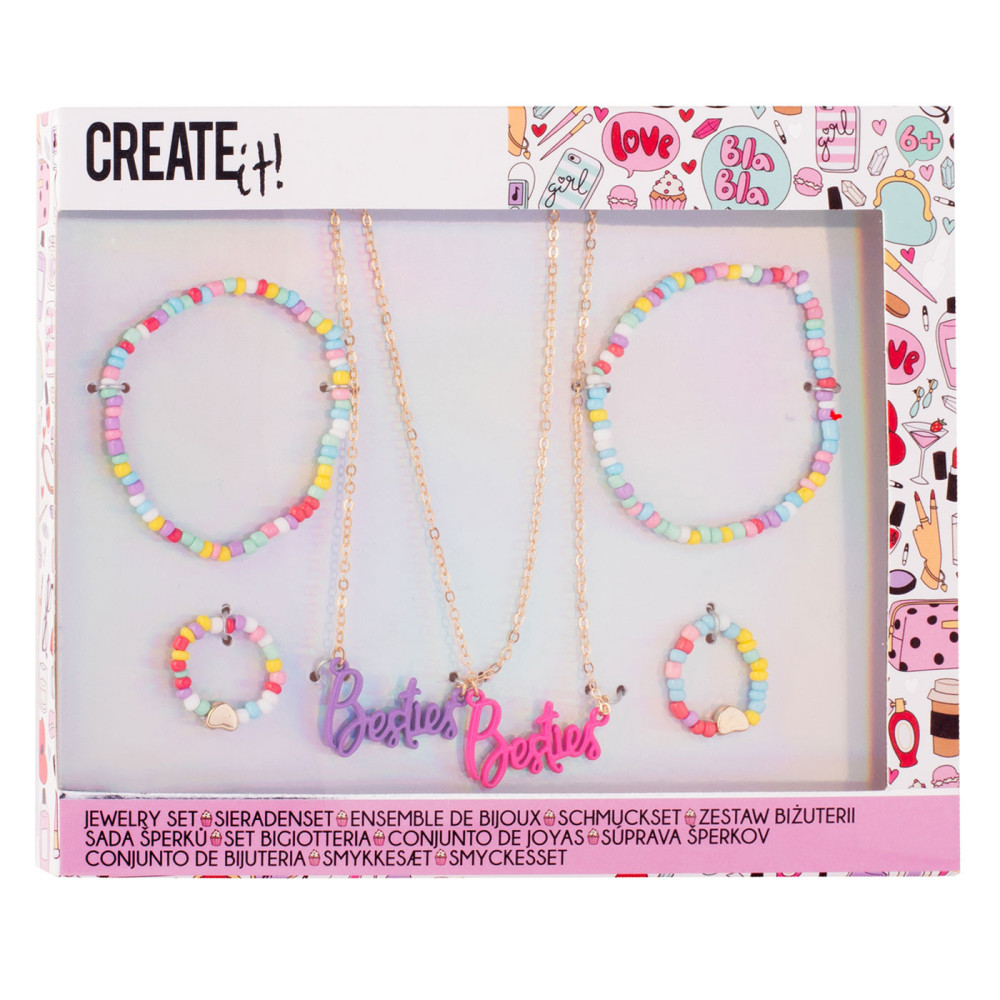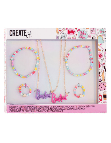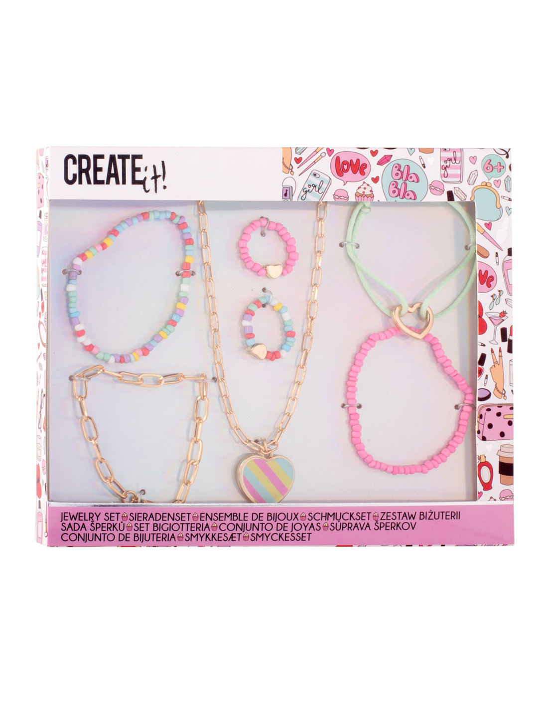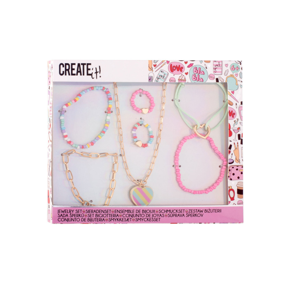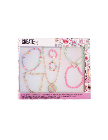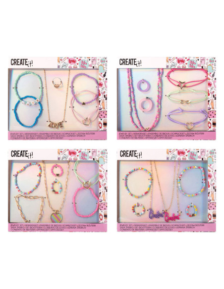 Stap in de wereld van zelfexpressie en creativiteit met de schitterende Create it! Sieraden Set! Deze set is ontworpen voor jonge fashionista's die hun persoonlijke stijl willen laten zien. Met vier verschillende sieradensets om te verzamelen, biedt deze collectie eindeloze mogelijkheden om te mixen en matchen voor elke gelegenheid.