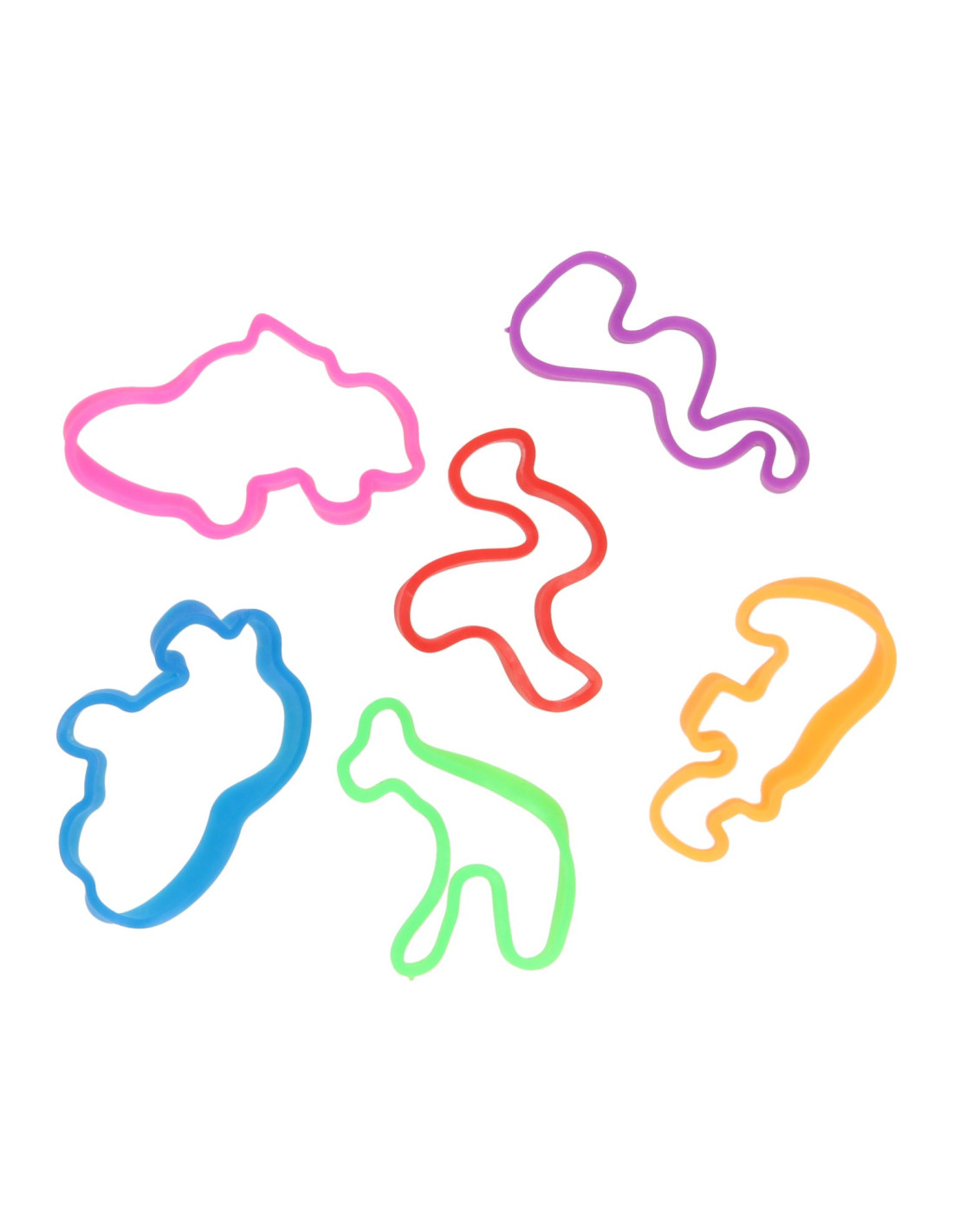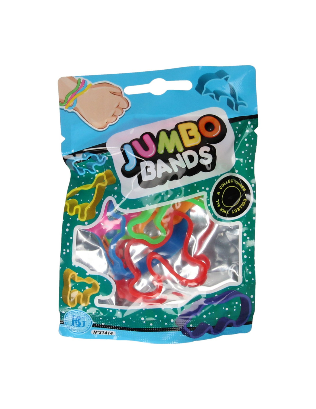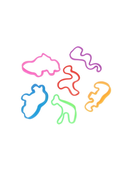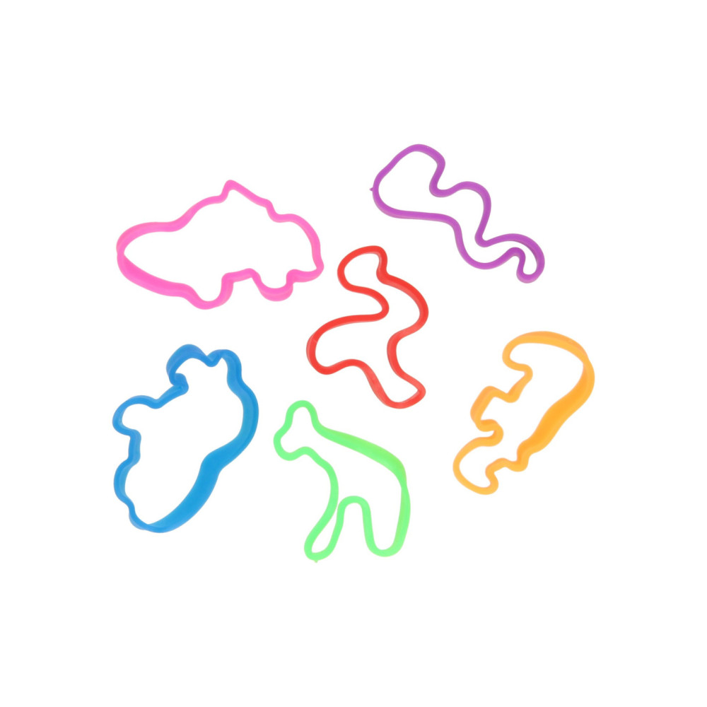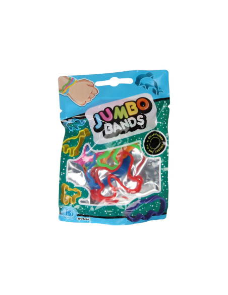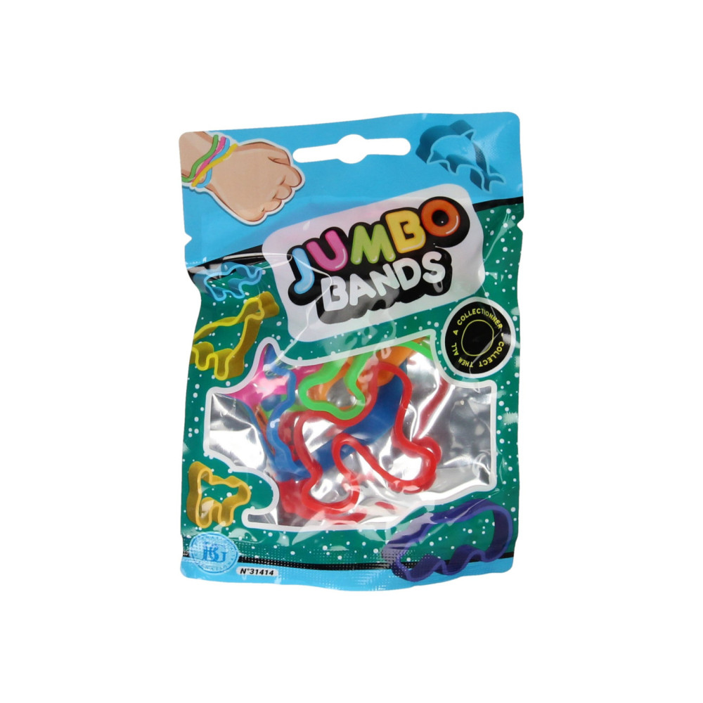Zakje met 6 Jumbo Bands siliconen armbandjes. De armbandjes hebben leuke dierenvormen en zijn geschikt voor kinderen vanaf 3 jaar oud.