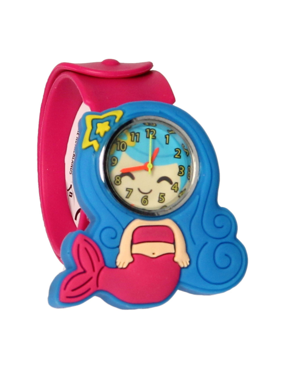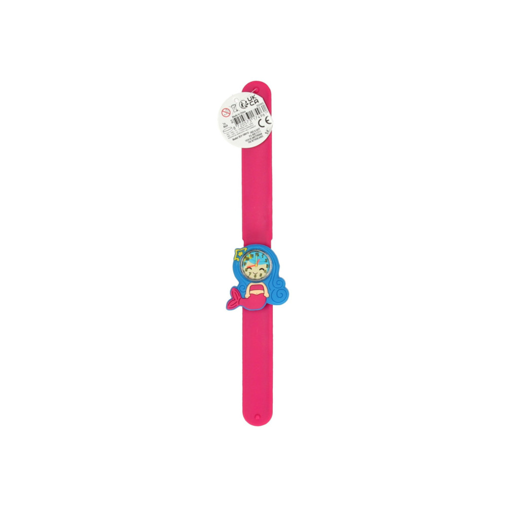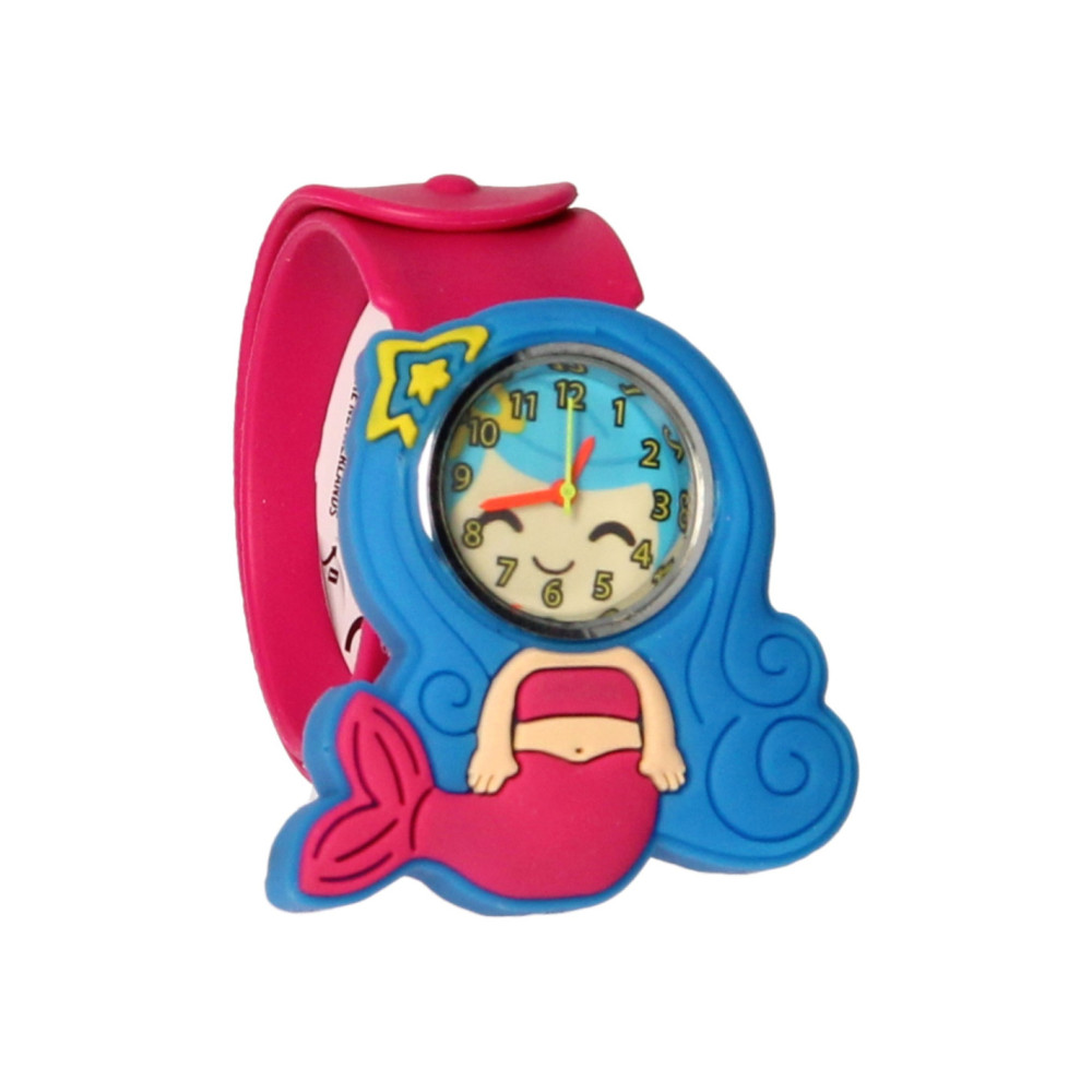 Voeg een magische touch toe aan je accessoires met deze betoverende klaparmband met horloge in een zeemeerminthema! Deze kleurrijke klaparmband is niet alleen een stijlvol sieraad, maar ook een handig horloge waarmee je altijd de tijd bij de hand hebt. Het zeemeerminthema brengt een vleugje fantasie en avontuur aan je pols, perfect voor jonge zeemeerminfans.
