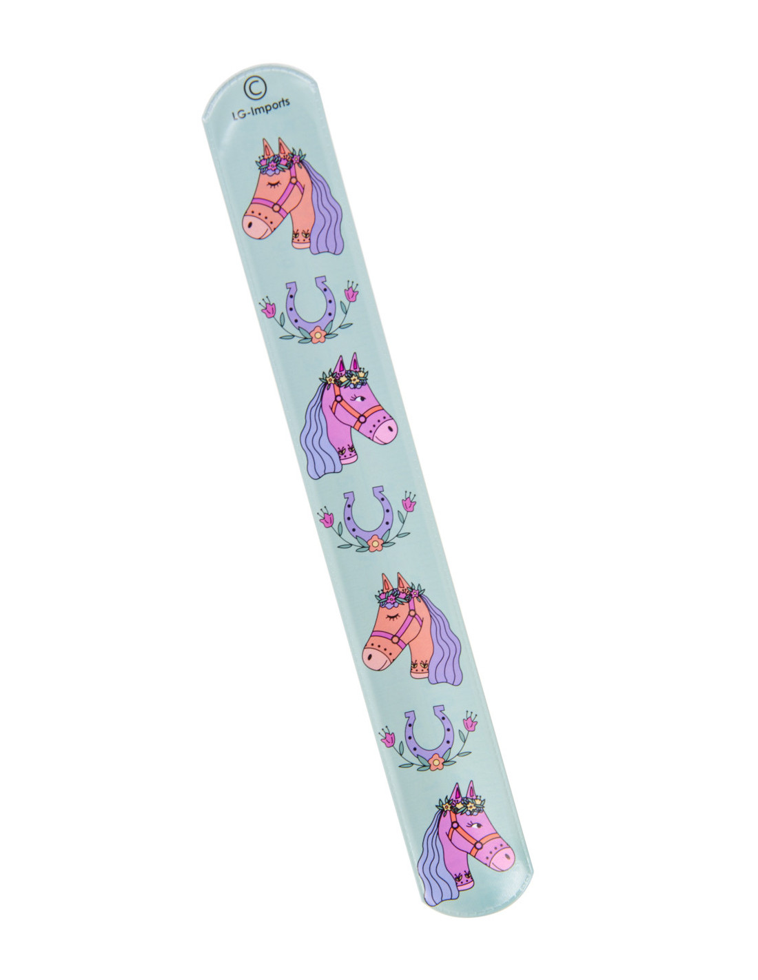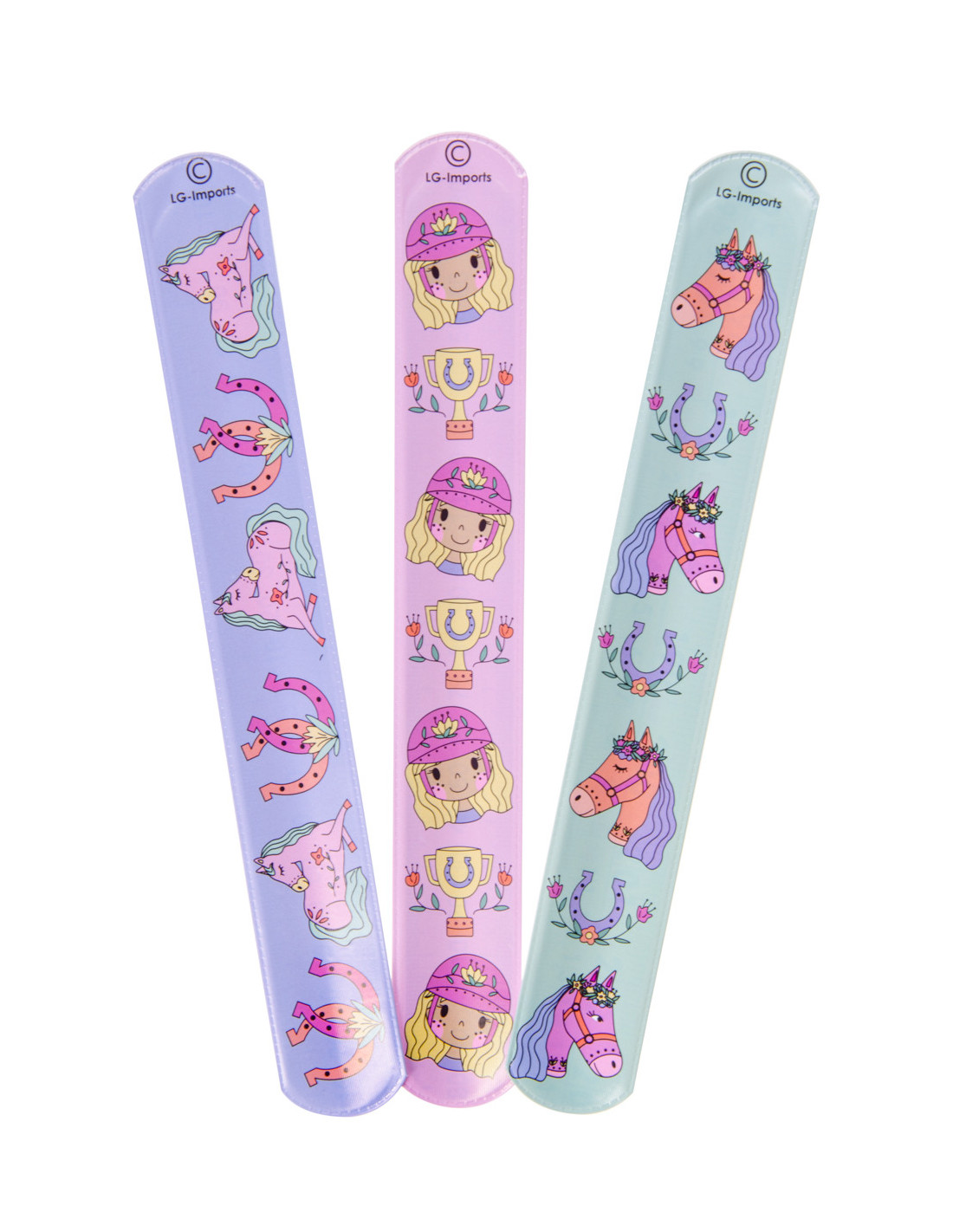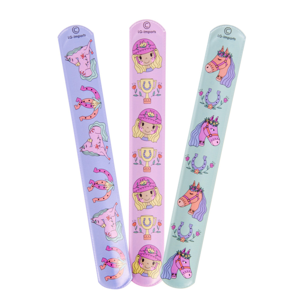 Dit betreft een bundel van 36 klaparmbanden met paarden thema.