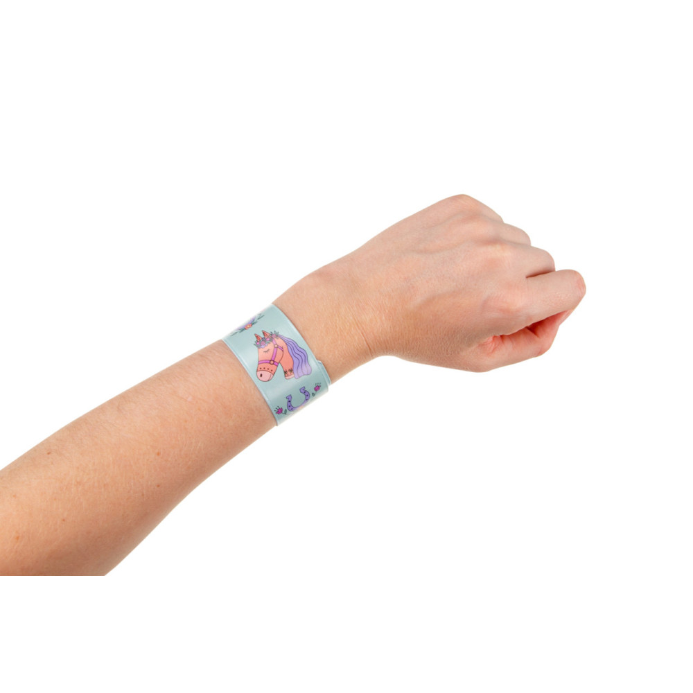 Ben je op zoek naar een leuke en speelse accessoire? Dan is deze klaparmband met paard thema perfect voor jou! Met slechts een tik op je pols rolt deze armband vanzelf om je pols heen, waardoor je direct een unieke en stijlvolle look hebt.