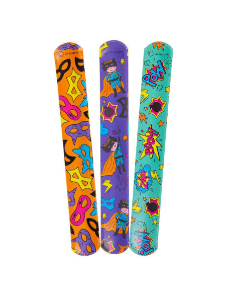 Draag de kracht van je favoriete superheld om je pols met deze stoere klaparmband! Deze unieke armband is versierd met iconische afbeeldingen van superhelden. Of je nu fan bent van snelle actie of brute kracht, deze klaparmband is perfect voor superheldenliefhebbers van alle leeftijden.