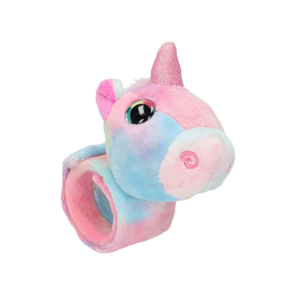 Zachte, stoffen klaparmband met eenhoorn-knuffeltje.