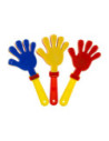 Het klaphandje groot is een vrolijk geluidsspeeltje dat gegarandeerd de aandacht trekt. Met een simpele beweging heen en weer zorgt dit handvormige speeltje voor een luid klappend geluid. Ideaal voor feestjes, sportwedstrijden of als vrolijk uitdeelcadeautje. Het klaphandje is gemaakt van stevig kunststof en ligt prettig in de hand dankzij het lange handvat. Door het lichte gewicht is het eenvoudig te gebruiken door kinderen. Het handje bestaat uit drie lagen die tegen elkaar slaan bij beweging, wat zorgt voor het kenmerkende klapgeluid. Dit maakt het klaphandje niet alleen leuk om mee te spelen, maar ook perfect om aan te moedigen tijdens evenementen of optredens. De felle kleuren zorgen voor extra visuele aantrekkingskracht en maken het handje een opvallende toevoeging aan elk feestpakket of traktatiezakje. Het klaphandje groot is een klassiek en tijdloos speeltje dat kinderen blijft aanspreken door het eenvoudige maar effectieve ontwerp. Verschillende uitvoeringen/kleuren worden door elkaar geleverd.