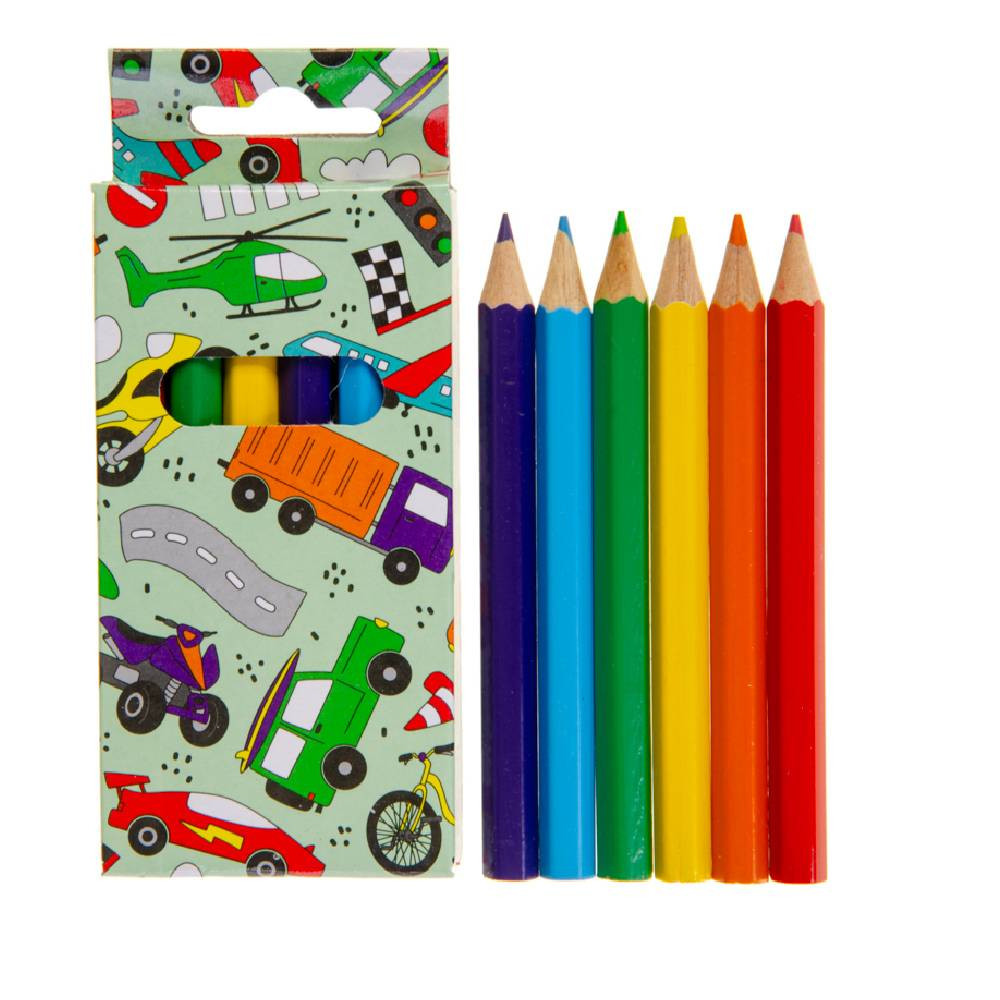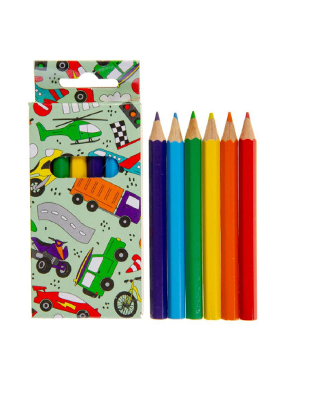 Breng je favoriete voertuigen tot leven met deze kleurpotloden in voertuigen thema! Deze set van 6 kleurrijke potloden is perfect voor jonge avonturiers die van snelheid, actie en voertuigen houden. Elk potlood heeft een levendige kleur, waarmee je de mooiste tekeningen van auto’s, vrachtwagens, vliegtuigen en meer kunt maken.