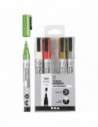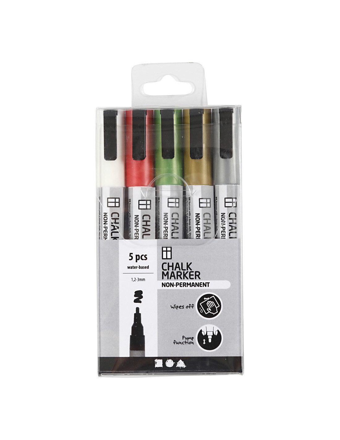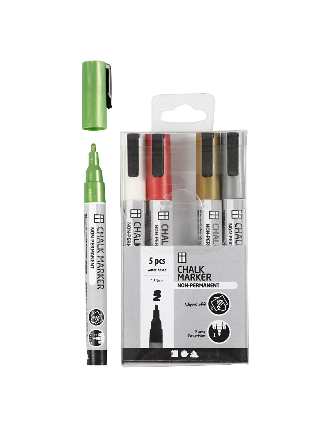 Voor gebruik dient de stift 20 seconden goed geschud te worden. Door de stift een beetje in te duwen bij de punt tegen het oppervlak, komt er vloeibaar krijt uit en kun je tekenen.