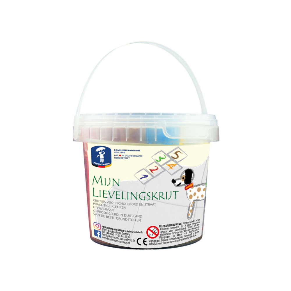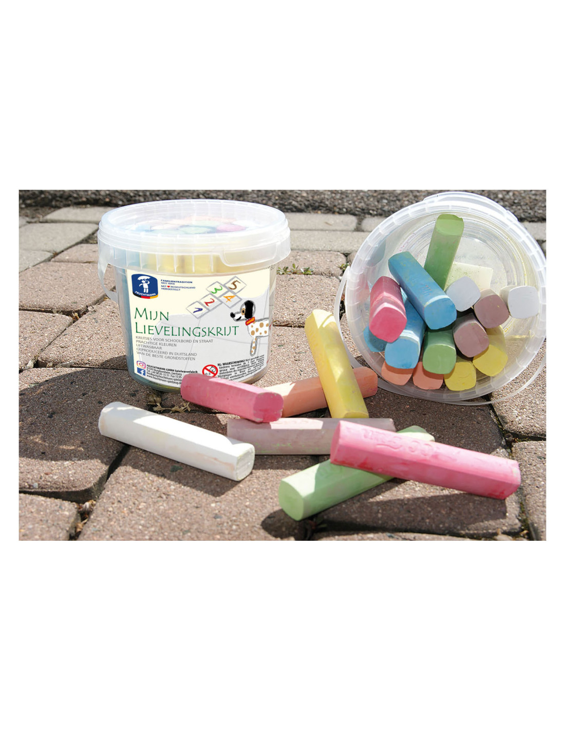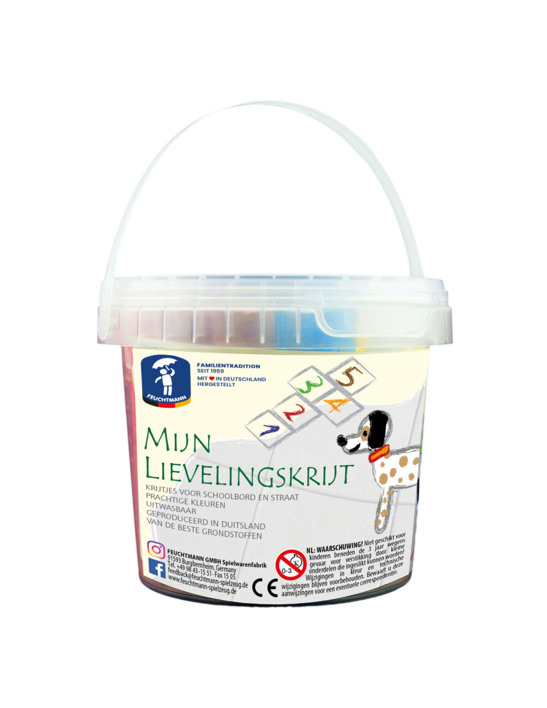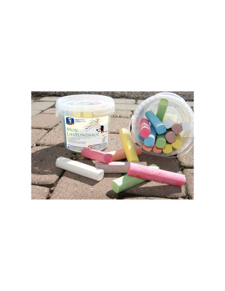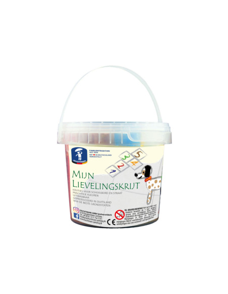 Emmertje met krijtjes voor op een schoolbord en op de stoep. 7 kleuren. Uitwasbaar. Geproduceerd in Duitsland. Gemaakt van de beste grondstoffen. Geschikt voor kinderen van 3 tot 7 jaar oud.