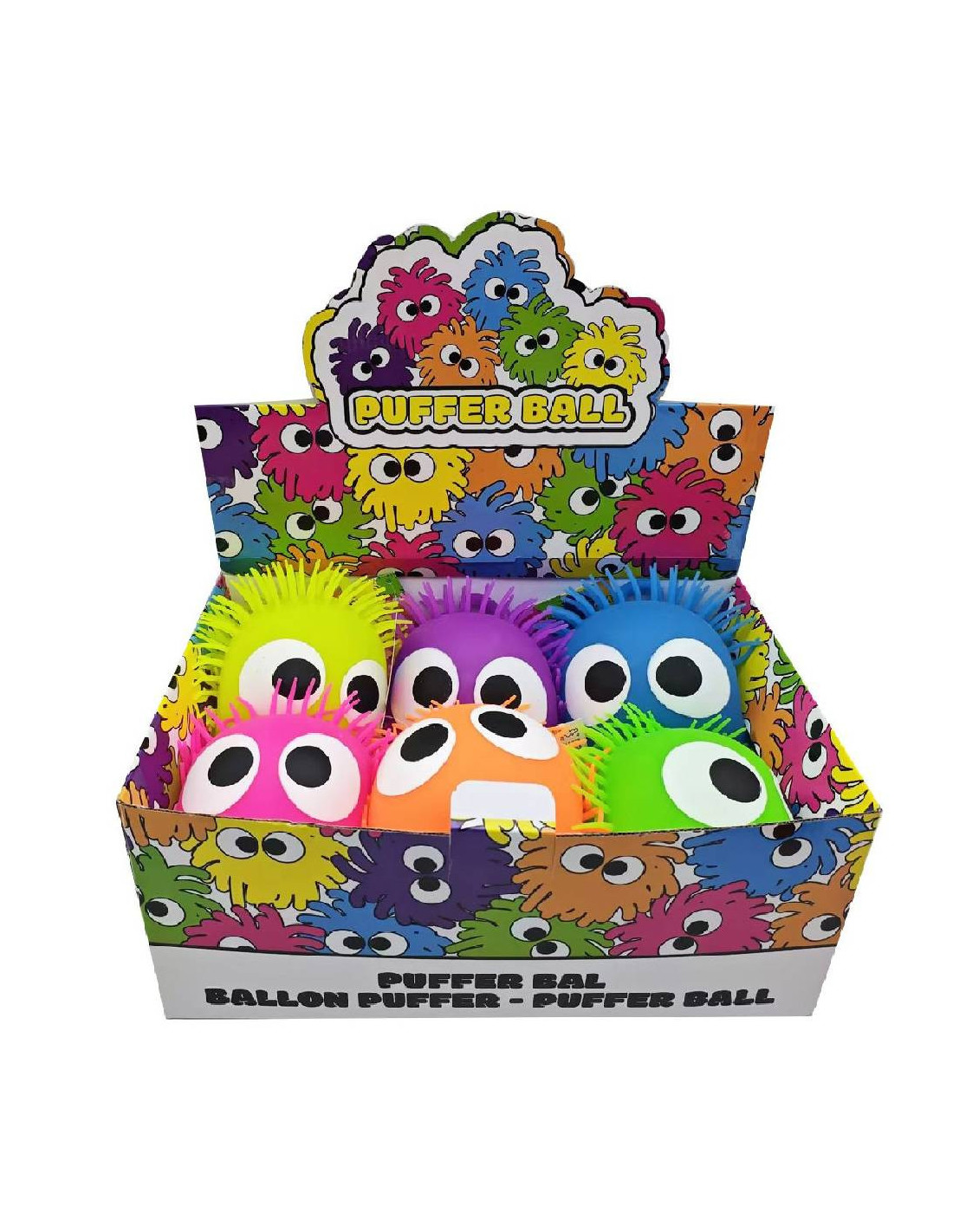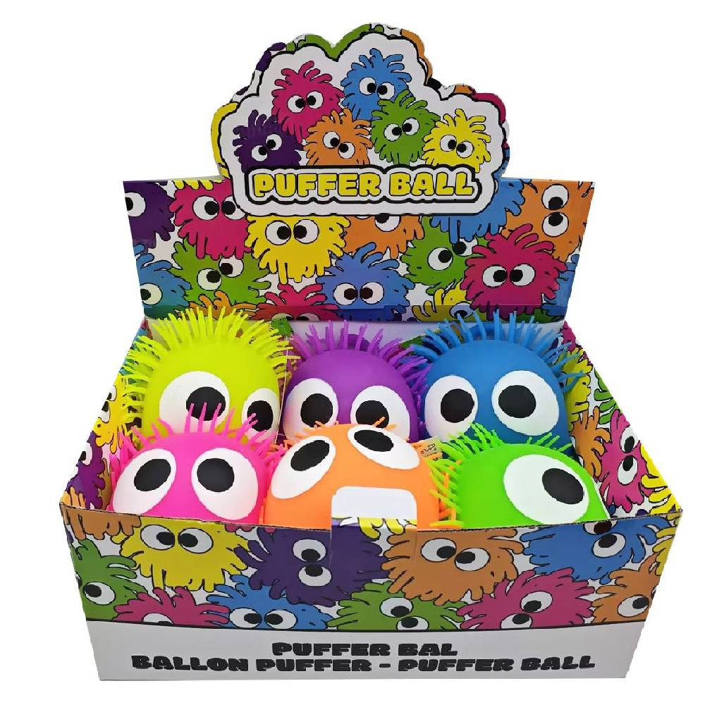Dankzij de vrolijke ogen krijgt de pufferbal een grappige uitstraling, waardoor hij direct in het oog springt. Geschikt voor kinderen vanaf 3 jaar en perfect als traktatie, uitdeelcadeautje of klein geschenk. De ballen zijn verkrijgbaar in diverse kleuren, die willekeurig worden geleverd, wat elke bestelling een leuke verrassing maakt.
