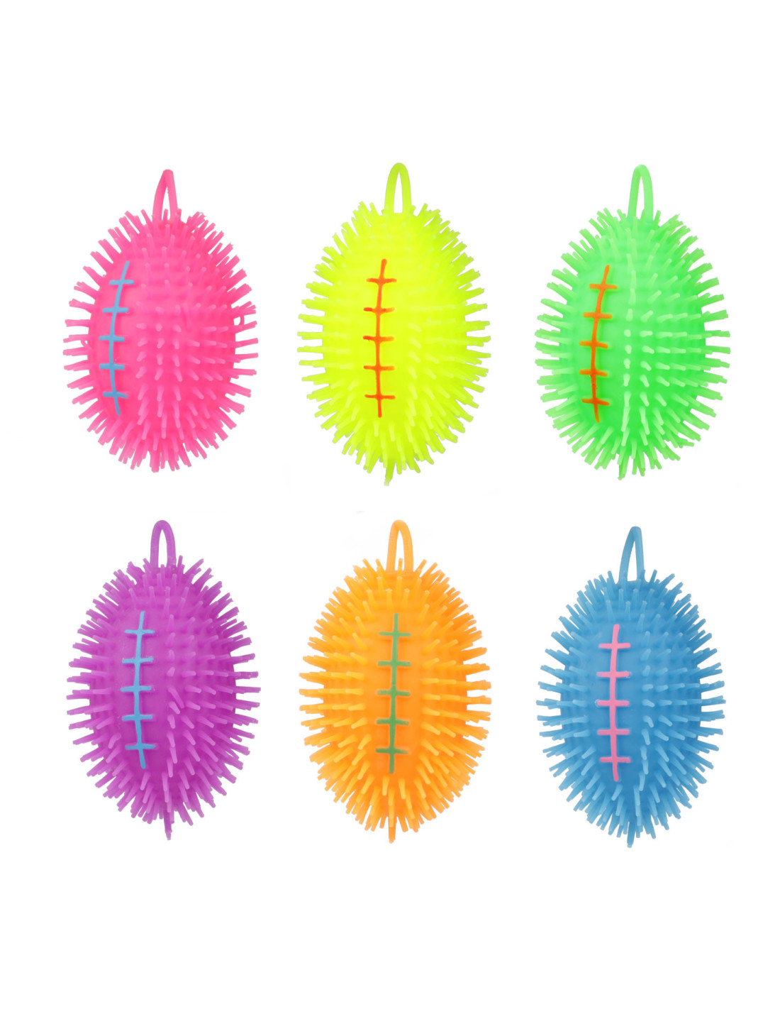 Pufferbal in de vorm van een rugbybal. Inclusief vingerhaakje en 14 centimeter groot. Geschikt voor kinderen van 3 jaar en ouder.