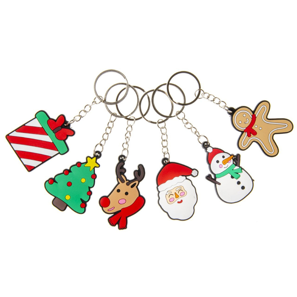 Deze sleutelhangers in kerstthema zijn een feestelijke toevoeging aan elke sleutelbos of traktatie tijdens de decembermaand. De set bevat diverse herkenbare figuren zoals een kerstboom, rendier, kerstman, sneeuwpop, cadeautje en een vrolijk gingerbread poppetje. Elk figuurtje is gemaakt van zacht kunststof met heldere kleuren en een speels ontwerp, wat zorgt voor een vrolijke en winterse uitstraling. De sleutelhangers zijn voorzien van een stevige metalen ring en ketting, waarmee ze eenvoudig bevestigd kunnen worden aan sleutels, een tas of etui. Door het lichte materiaal zijn ze gemakkelijk mee te nemen en ideaal als uitdeelcadeautje tijdens kerstfeestjes, in adventskalenders of als kleinigheidje onder de boom.