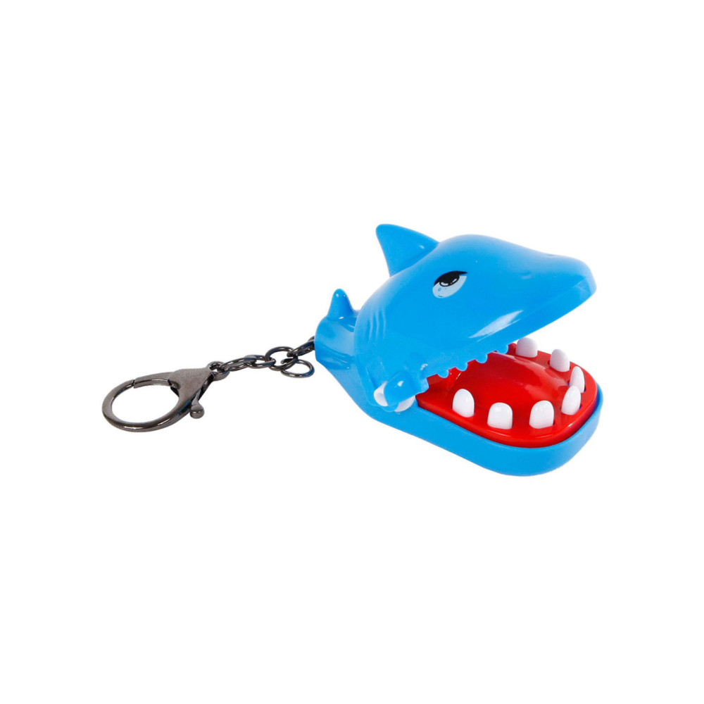 Welkom bij onze collectie van leuke en spannende sleutelhangers! Onze haai-sleutelhanger is voorzien van een leuk en uitdagend spel. Het doel is om alle tanden in te drukken zonder dat de bek van de haai dichtklapt en je vinger 'opgegeten' wordt. Je kunt het spel ook spelen met meerdere spelers door om-en-om een tandje in te drukken. Degene bij wie de bek dichtklapt verliest het spel!