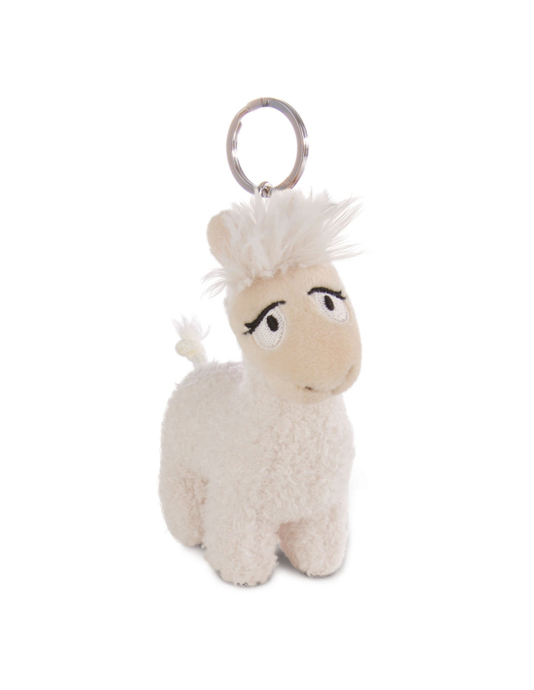 De witte NICI lama als schattige pluche hanger met koordstaart en een metalen sleutelhanger aan het hoofd. Lady is 10,5 bij 4,5 bij 9 centimeter groot. Ze is gemaakt van pluche en polyester, met een vulling van polyester. Geschikt voor kinderen vanaf 3 jaar oud.