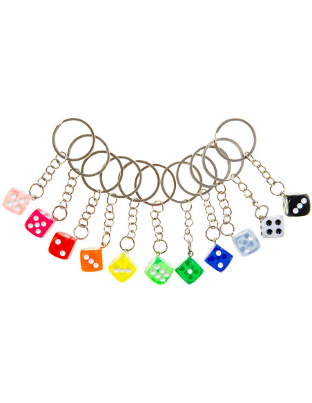 Kleurrijke sleutelhanger in de vorm van een dobbelsteen die direct opvalt aan elke tas of sleutelbos. De transparante afwerking geeft een speelse uitstraling en laat het licht mooi door de randen schijnen. Ideaal om als klein cadeautje of traktatie te geven en handig om sleutels gemakkelijk terug te vinden. De metalen ketting en ring zorgen voor een stevige bevestiging, waardoor de dobbelsteen goed blijft zitten. Leuk om te gebruiken als klein extraatje bij feestjes, evenementen of als uitdeelcadeautje in een grabbelton. Dankzij de verschillende kleuren past deze sleutelhanger bij iedere stijl of gelegenheid en is hij leuk voor jong en oud. De dobbelsteen is een klassiek symbool van spel en geluk, waardoor het ook een vrolijk detail is aan een rugzak of etui. Verschillende uitvoeringen/kleuren worden door elkaar geleverd.