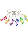 Kleurrijke sneaker verandert elke sleutelbos in een speels detail met een opvallend ontwerp vol frisse tinten. Het materiaal voelt stevig aan en geeft het hangertje een flexibele uitstraling. De vorm is duidelijk herkenbaar, met een profielzool, veters en een gestileerde letter op de zijkant die het geheel een sportieve look geeft. Ideaal om een sleutelbos, rits of tas een vrolijke draai te geven zonder dat het teveel ruimte inneemt of zwaar aanvoelt. Het hangertje heeft een lichtgewicht ontwerp waardoor het prettig meebeweegt en gemakkelijk mee te nemen is. De combinatie van kleuren maakt het een uitnodigend accessoire dat goed past bij zowel kinderen als volwassenen. Een leuk cadeautje om uit te delen of als klein extraatje bij een traktatie, waarbij de sneaker zorgt voor een vlotte en vrolijke uitstraling.