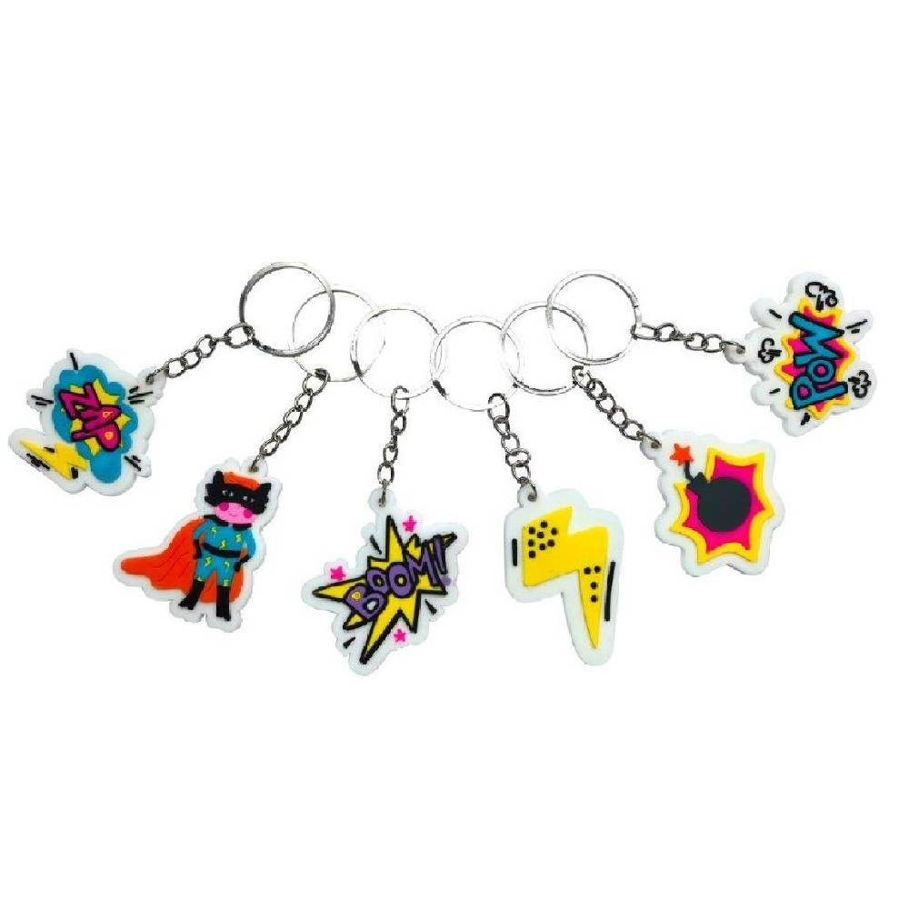 Gemaakt van stevig kunststof, kunnen ze eenvoudig worden bevestigd aan je sleutelbos, tas of rugzak. Zo heb je altijd een kleurrijk en grappig accessoire bij de hand, waarmee je jouw superheldenstatus kunt benadrukken, waar je ook gaat!