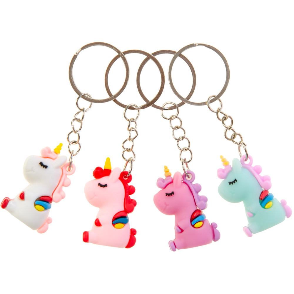 Een vrolijk eenhoornfiguurtje geeft elke sleutelbos een zachte, dromerige uitstraling. De ronde vormen, gesloten oogjes en subtiele glimlach zorgen voor een vriendelijke en speelse look. Het figuurtje heeft een kleurrijke manen en een klein hoornje dat het geheel meteen herkenbaar maakt. Het soepele materiaal voelt prettig aan en behoudt de details mooi, terwijl het lichte gewicht ervoor zorgt dat het hangertje makkelijk meebeweegt zonder te storen. Het metalen kettinkje biedt een stevige bevestiging aan een sleutel, tas of rits, waardoor het een praktisch én leuk accessoire is. Dankzij de kleurrijke accenten past het figuurtje goed bij zowel kinderen als volwassenen en maakt het elke sleutelbos net wat persoonlijker. Ideaal als klein cadeautje of als charmante toevoeging bij een traktatie, waarbij de lieve uitstraling altijd een glimlach oproept.