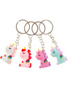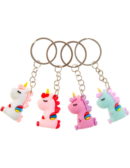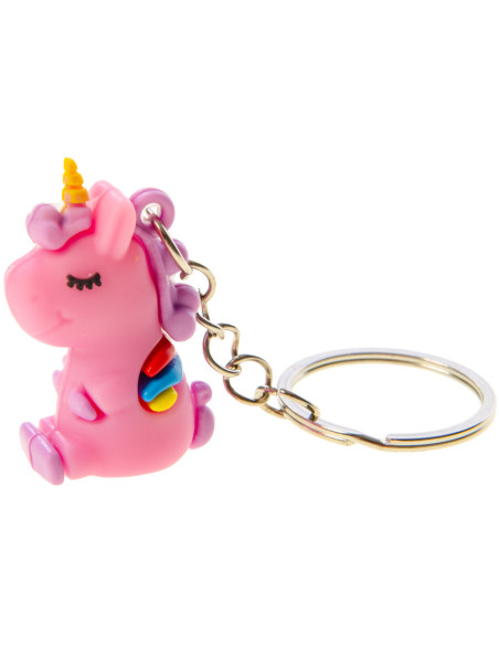 Een vrolijk eenhoornfiguurtje geeft elke sleutelbos een zachte, dromerige uitstraling. De ronde vormen, gesloten oogjes en subtiele glimlach zorgen voor een vriendelijke en speelse look. Het figuurtje heeft een kleurrijke manen en een klein hoornje dat het geheel meteen herkenbaar maakt. Het soepele materiaal voelt prettig aan en behoudt de details mooi, terwijl het lichte gewicht ervoor zorgt dat het hangertje makkelijk meebeweegt zonder te storen. Het metalen kettinkje biedt een stevige bevestiging aan een sleutel, tas of rits, waardoor het een praktisch én leuk accessoire is. Dankzij de kleurrijke accenten past het figuurtje goed bij zowel kinderen als volwassenen en maakt het elke sleutelbos net wat persoonlijker. Ideaal als klein cadeautje of als charmante toevoeging bij een traktatie, waarbij de lieve uitstraling altijd een glimlach oproept.
