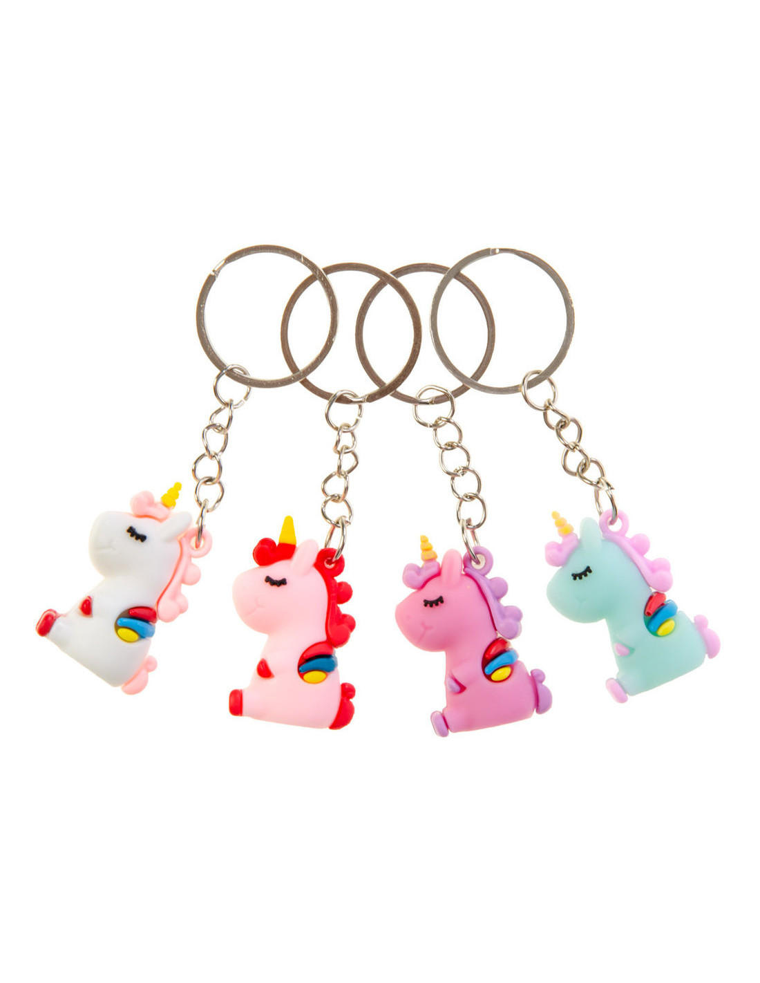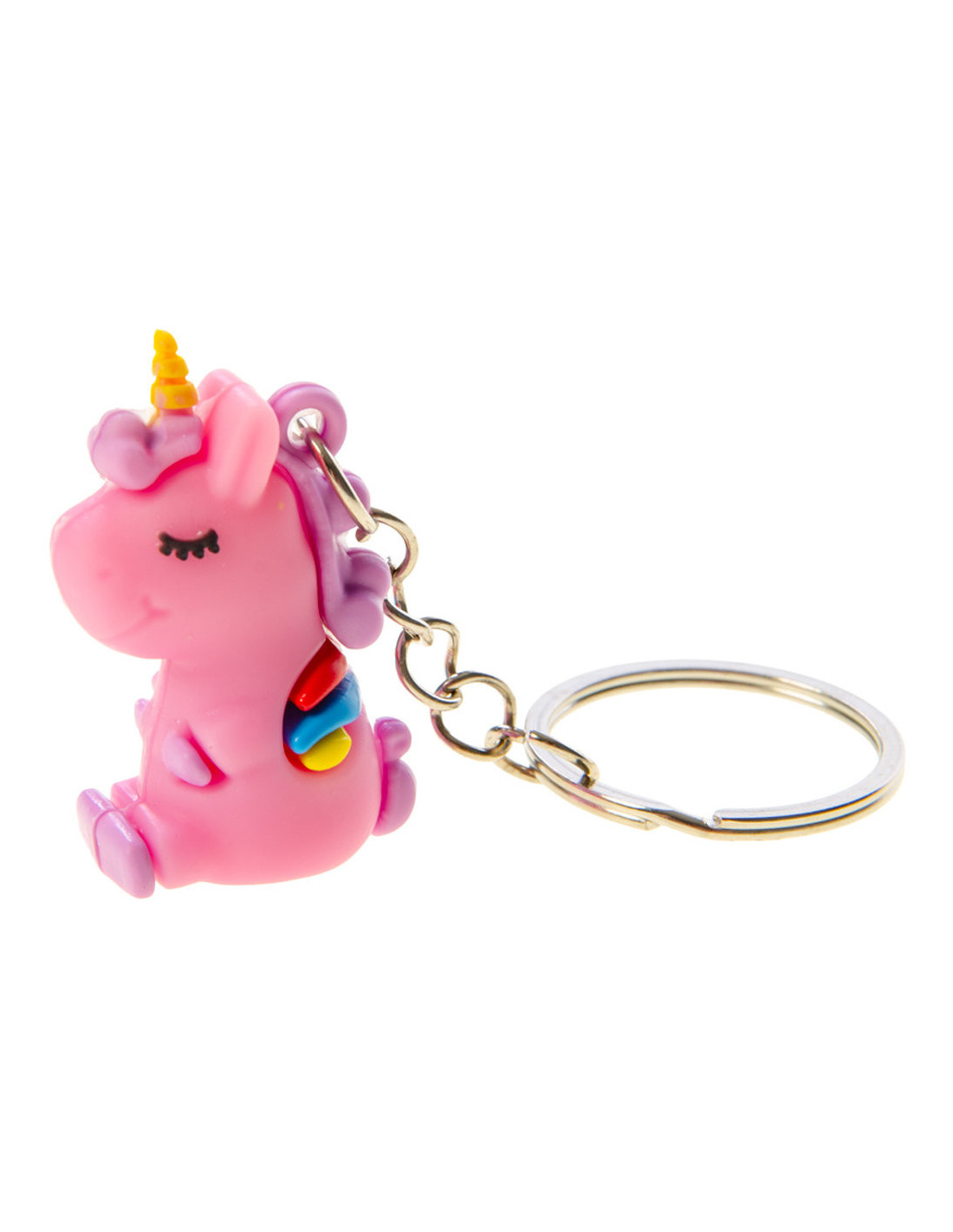 Een vrolijk eenhoornfiguurtje geeft elke sleutelbos een zachte, dromerige uitstraling. De ronde vormen, gesloten oogjes en subtiele glimlach zorgen voor een vriendelijke en speelse look. Het figuurtje heeft een kleurrijke manen en een klein hoornje dat het geheel meteen herkenbaar maakt. Het soepele materiaal voelt prettig aan en behoudt de details mooi, terwijl het lichte gewicht ervoor zorgt dat het hangertje makkelijk meebeweegt zonder te storen. Het metalen kettinkje biedt een stevige bevestiging aan een sleutel, tas of rits, waardoor het een praktisch én leuk accessoire is. Dankzij de kleurrijke accenten past het figuurtje goed bij zowel kinderen als volwassenen en maakt het elke sleutelbos net wat persoonlijker. Ideaal als klein cadeautje of als charmante toevoeging bij een traktatie, waarbij de lieve uitstraling altijd een glimlach oproept.