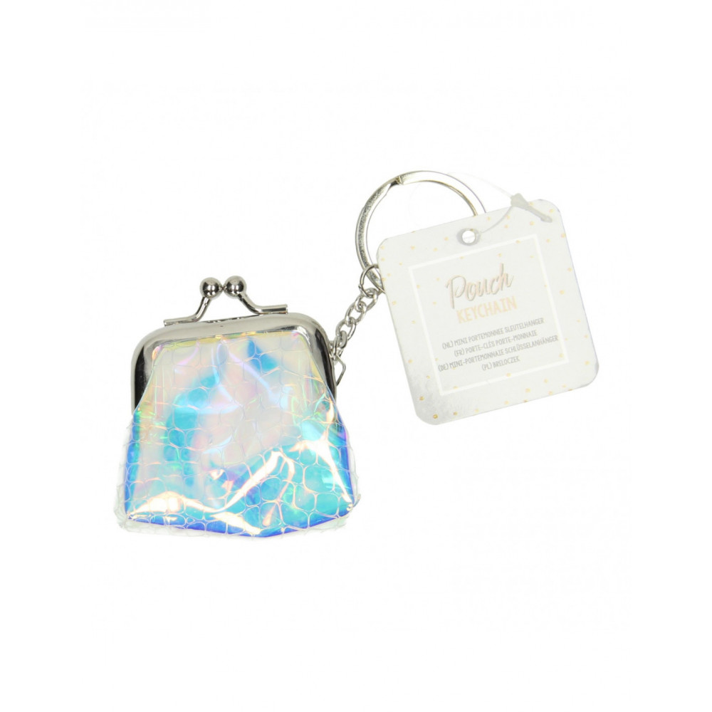 Transparante portemonnees voor aan je sleutebos. De portemonnees zijn circa 7 x 6 centimeter groot en weerkaatsen het licht in verschillende kleuren. Set van 12, niet geschikt voor kinderen onder de 3 jaar oud.
