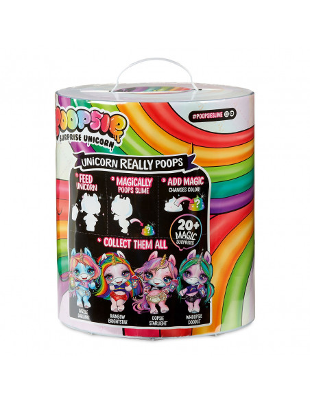 De Poopsie Slime Surprise Eenhoorn poept echt, niet echte vieze poep maar eenhoorn slijm poep. Welke unicorn je krijgt is nog een verrassing, is het Rainbow Brightstar of Oopsie Starlight? In de verpakking zitten wel 20 magische verrassingen die jou laten weten welke eenhoorn je hebt. Geef jouw unicorn te eten zet haar op het potje en ze poept regenboog slijm poep uit. Voeg er wat geur, glitters en flakes aan toe voor een magisch effect.