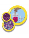 Slijm maken is geweldig! Mix je slijm, kies je kleur en voeg speciale extra's toe.Neem je slijm mee in je gedecoreerde zipper tasje, zodat je het altijd bij je hebt om mee te spelen. Deze slijm is Borax vrij.