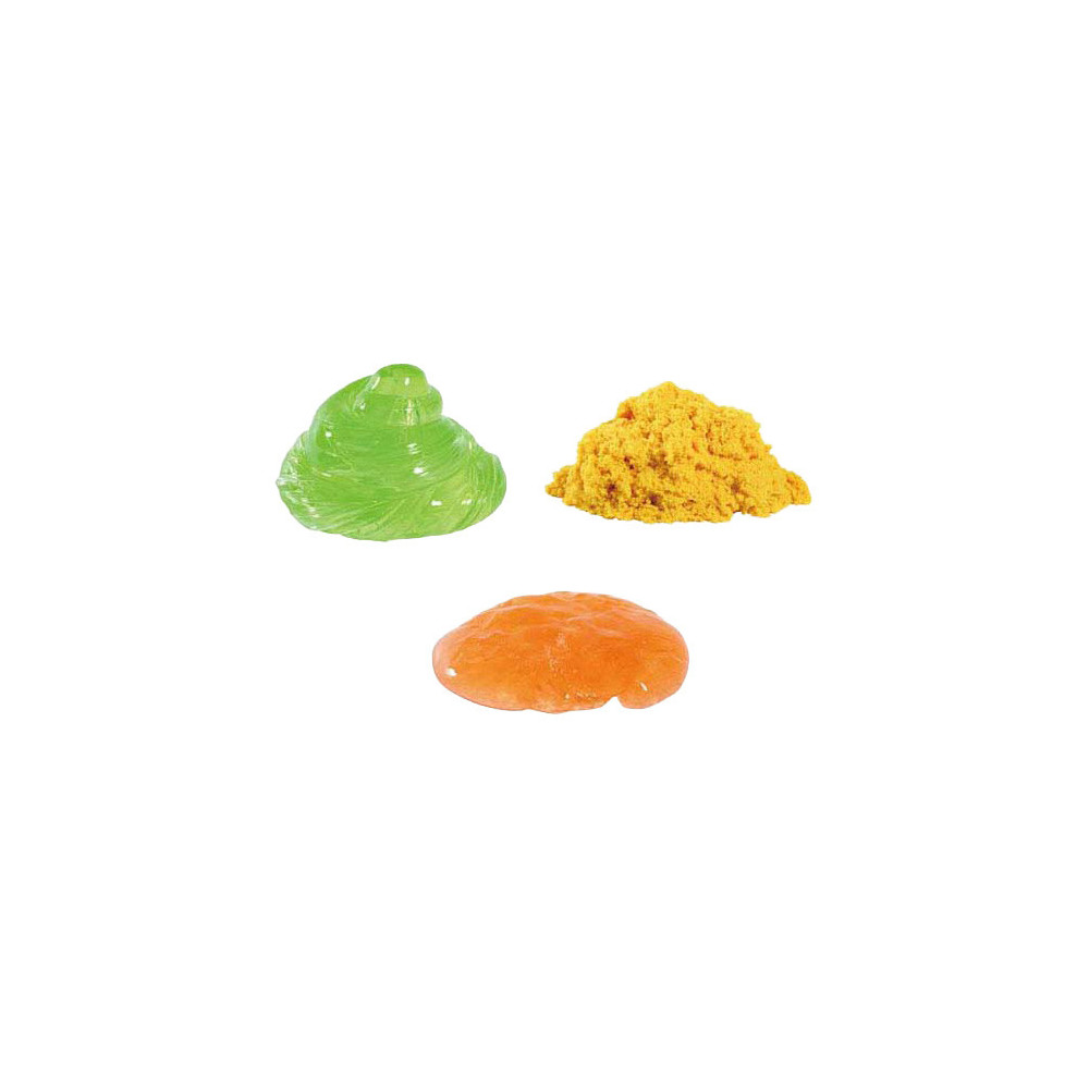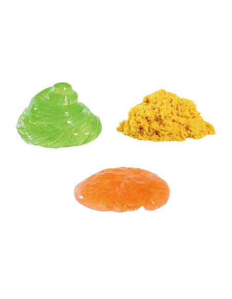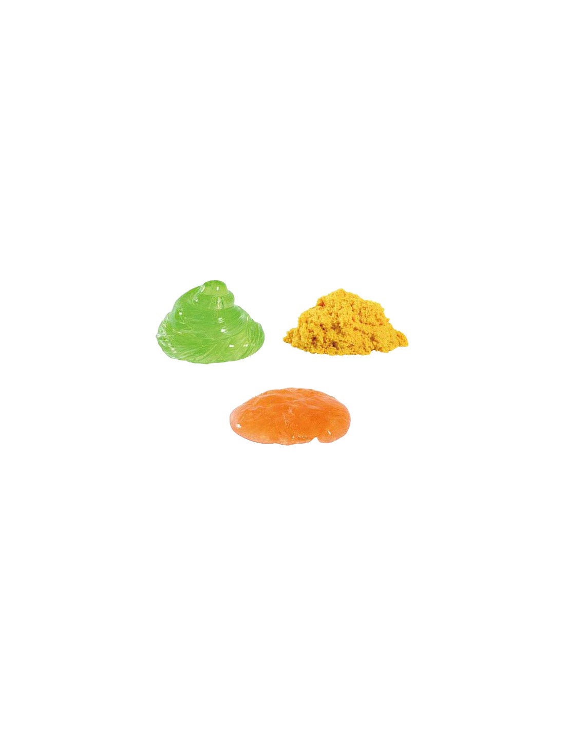 Set met 3 dino-eieren met slijm, magisch zand en glow in the dark dinofiguren. Geschikt vanaf 3 jaar.
