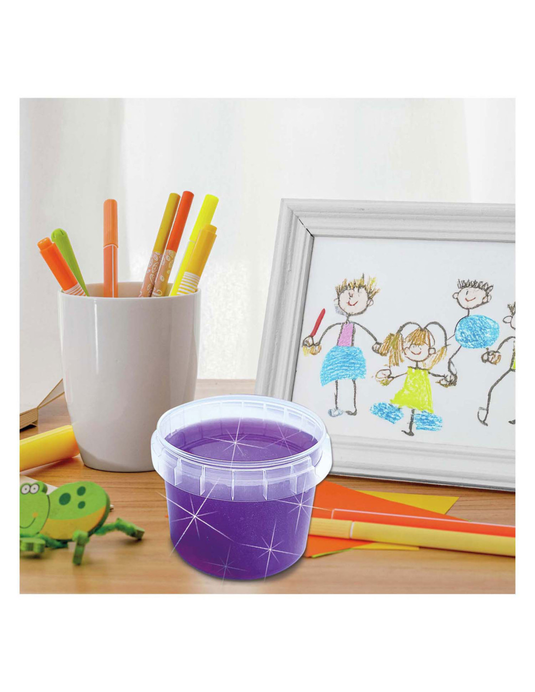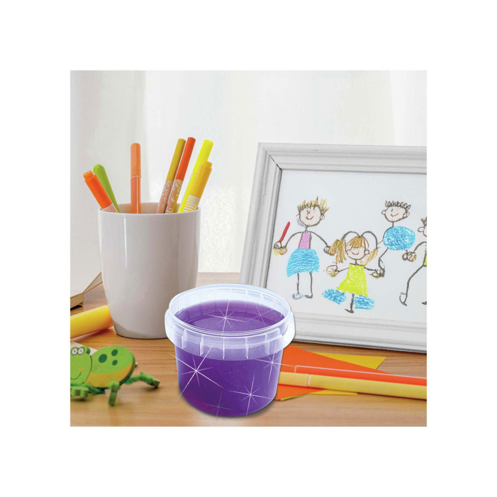 Ontdek de magie van Slime - Paars Glitter! Deze pot van 140 gram zit boordevol sprankelende paarse glitterslijm en biedt een betoverende speelsensatie die jonge slijmfans zal verrassen. Het levendige paars met schitterende glitters maakt elke slijmactiviteit extra speciaal en perfect voor eindeloze creatieve avonturen.De zachte en kneedbare textuur van deze slijm maakt het gemakkelijk te vormen, uit te rekken en te kneden. Ideaal voor kinderen die graag experimenteren met tactiel spel, terwijl de glinsterende glitter een extra sprankeling toevoegt aan hun creaties. Het compacte formaat van 140 gram is ideaal voor thuisgebruik of om te delen met vriendjes en vriendinnetjes.Of het nu gaat om een regenachtige middagactiviteit, een cadeautje of gewoon een moment van pure speelpret, Slime - Paars Glitter biedt urenlang plezier. Laat je fantasie de vrije loop en geniet van de schittering van deze magische paarse slijm!