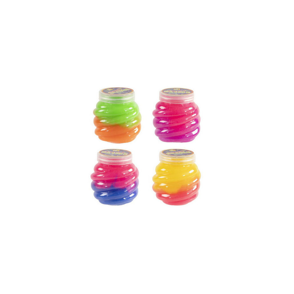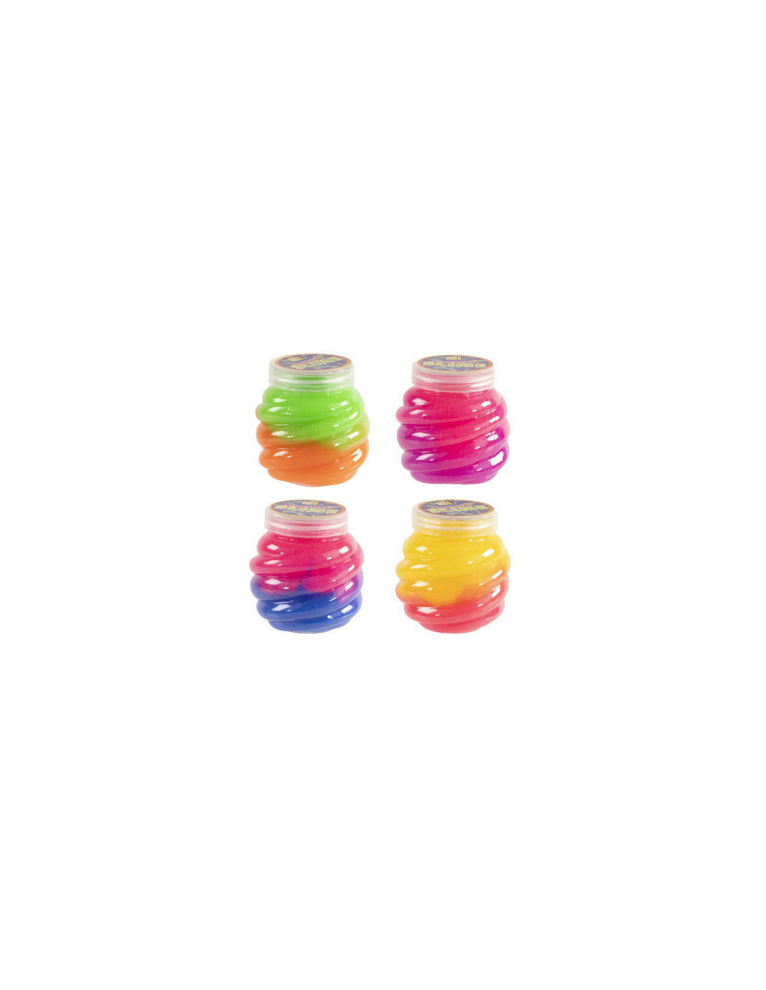 Tweekleurig 'Twist' putty slijm in een leuk gedraaid potje. De putty is licht glanzend. Inhoud: 74 gram. Afmetingen: 5,5 x 5,5 cm. Geschikt voor kinderen van 3 jaar en ouder.