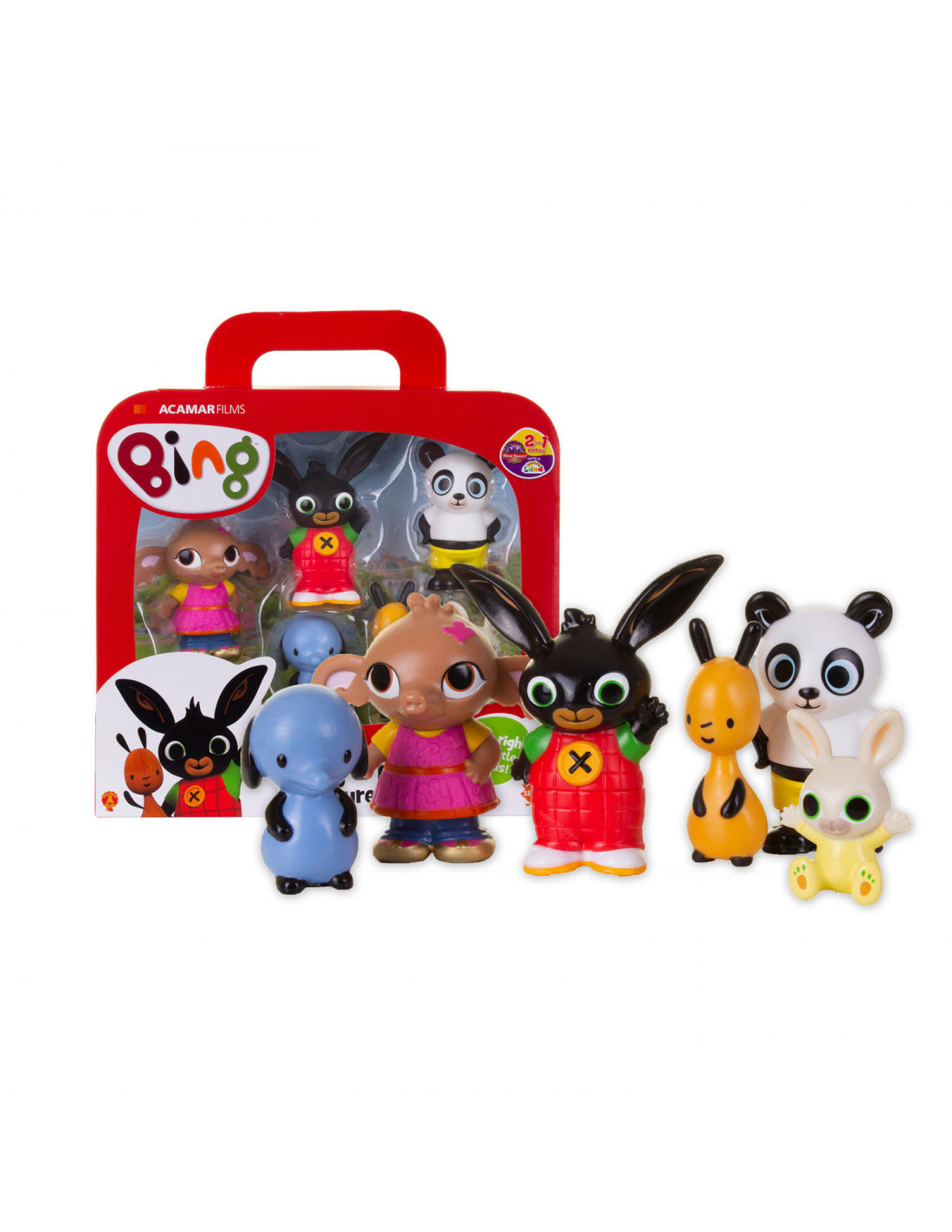 Stap in de vrolijke wereld van Bing en zijn vriendjes met dit rode koffertje vol figuren uit de animatieserie! Nu kun je de avonturen van Bing en zijn vriendjes eindeloos naspelen, waar je ook bent. Het rode koffertje bevat alle bekende figuren, waaronder Bing, Flop, Sula, Pando, Charlie en Amma, waardoor je alle favoriete personages altijd bij de hand hebt.